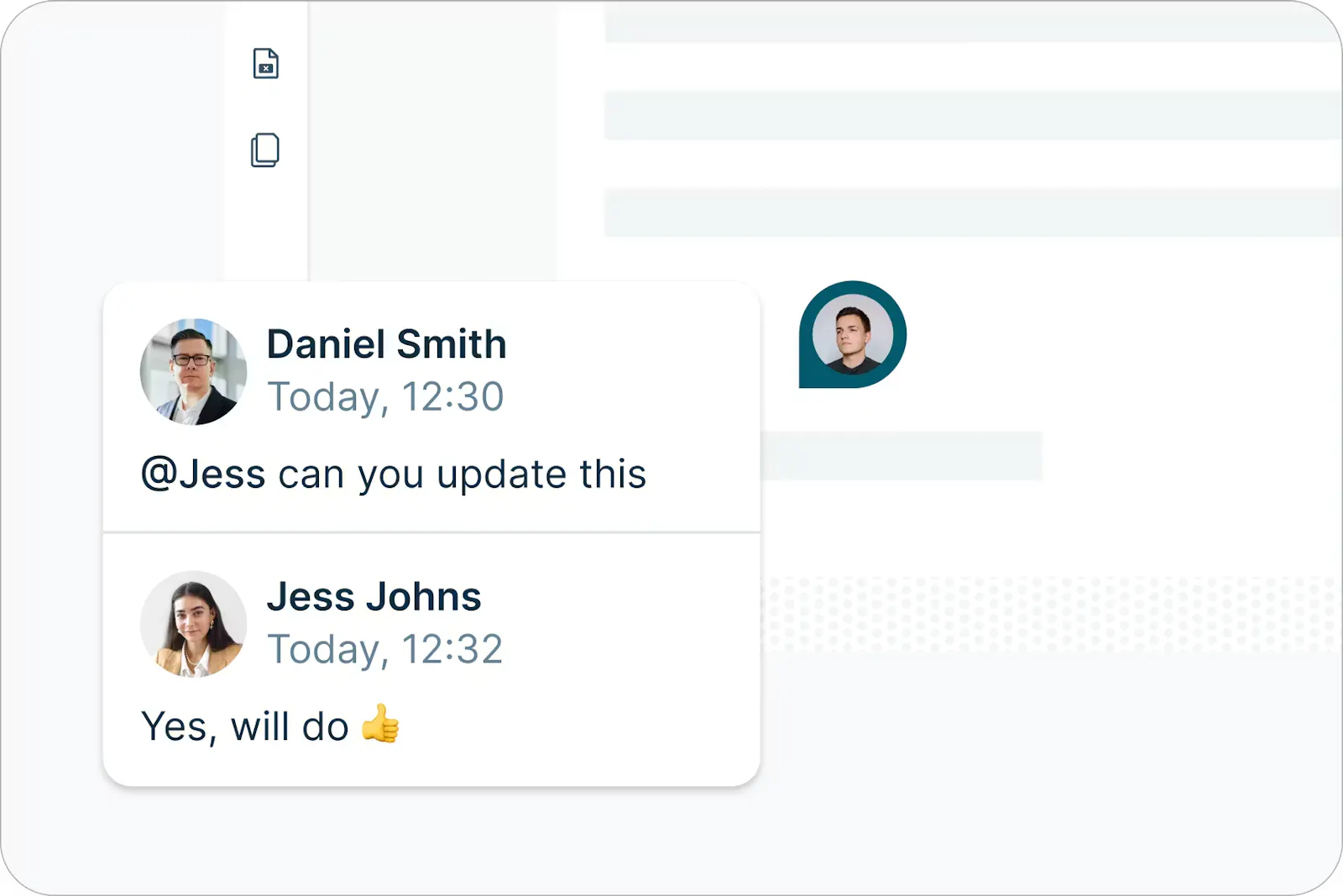 Collaborate live in a shared digital workspace where you can tag teammates, leave comments, and create Spaces to keep internal work organized and moving smoothly.