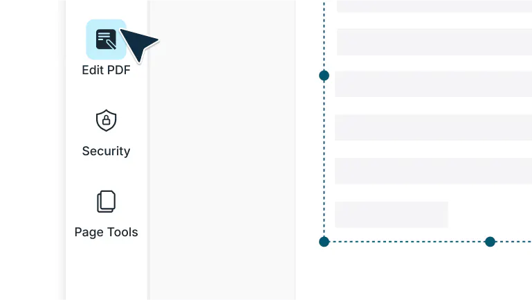 Um editor de PDF fácil de usar, independente ou integrado ao Google Workspace.