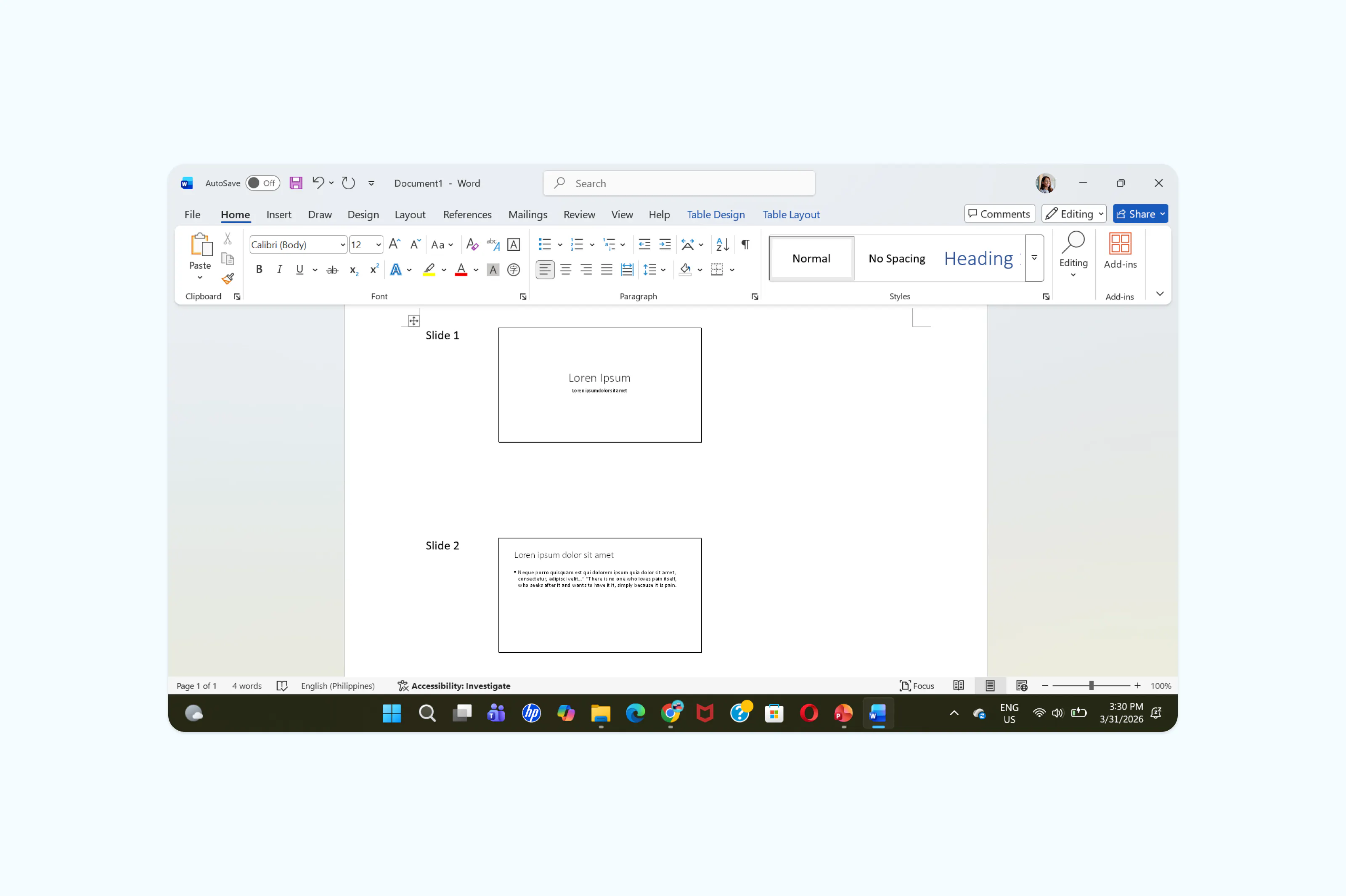 Formatting is one of the biggest challenges when converting between PowerPoint and Word. The two programs handle layouts very differently, so some visual elements will shift during conversion. Simple, text-focused presentations tend to convert cleanly. Slides with complex designs, custom fonts or layered graphics may need some manual cleanup in Word after conversion.