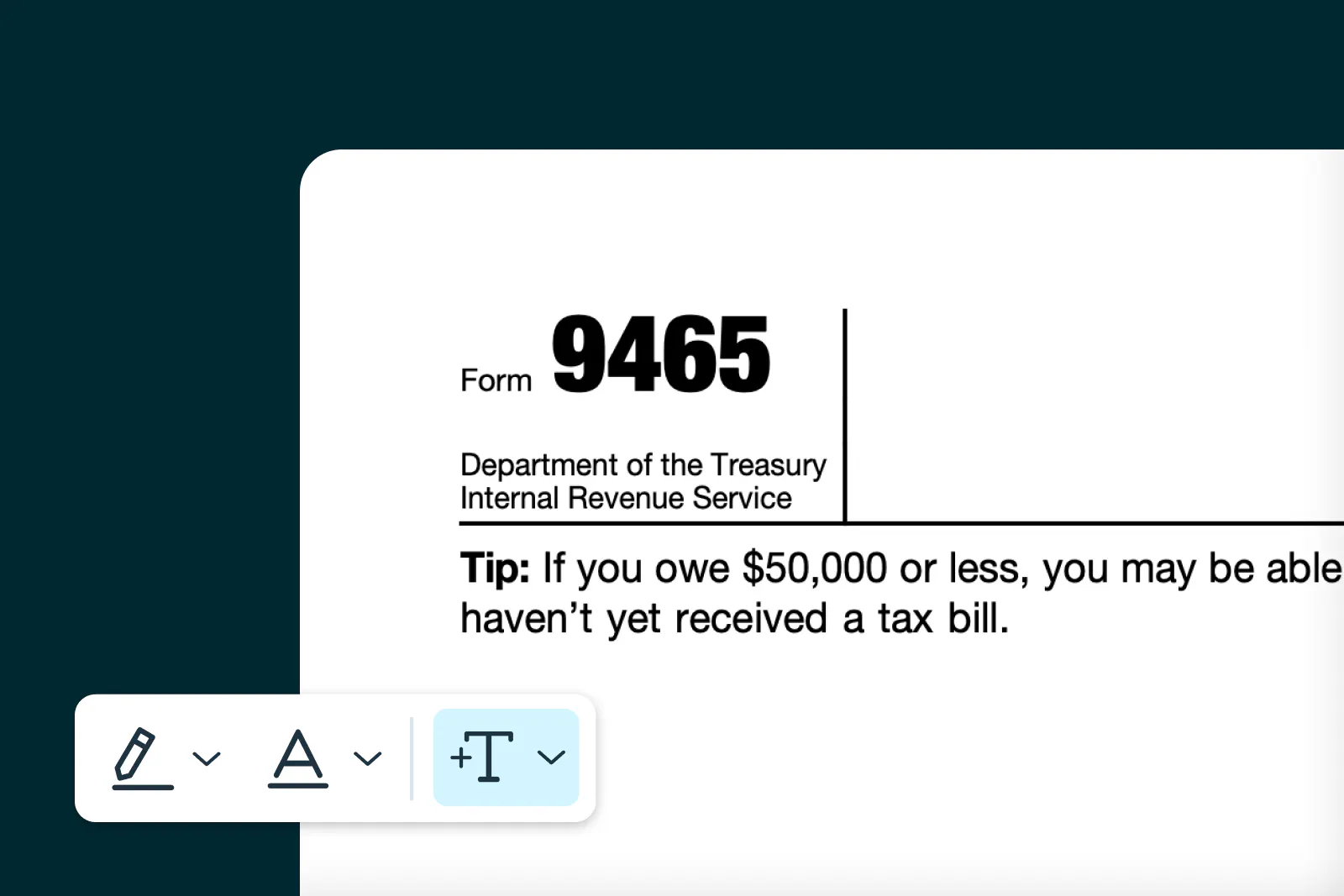 Once you’ve chosen Form-9465 in Template Discovery, you’ll be taken to the Lumin editor to complete the form.