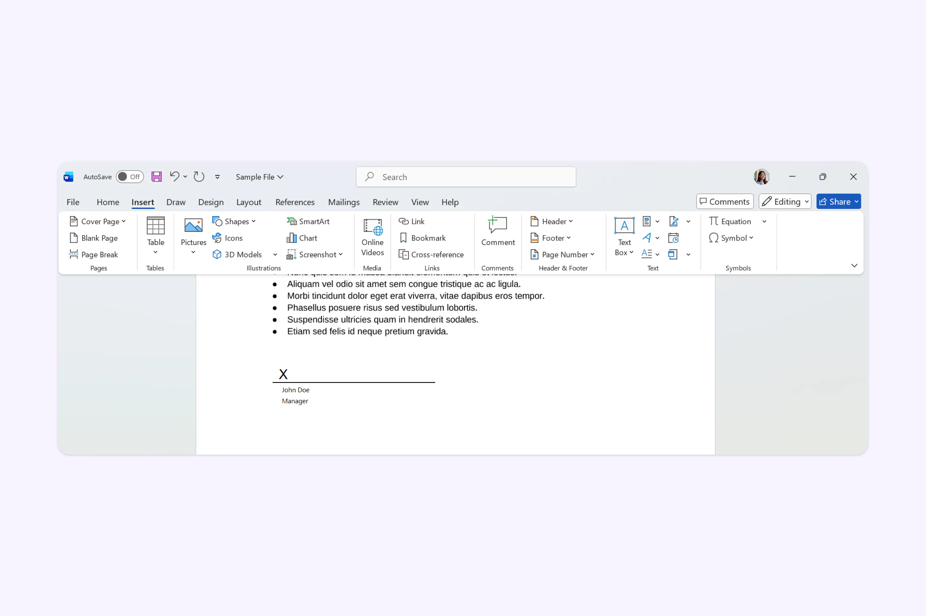 Method 2: Inserting a signature line in Word
