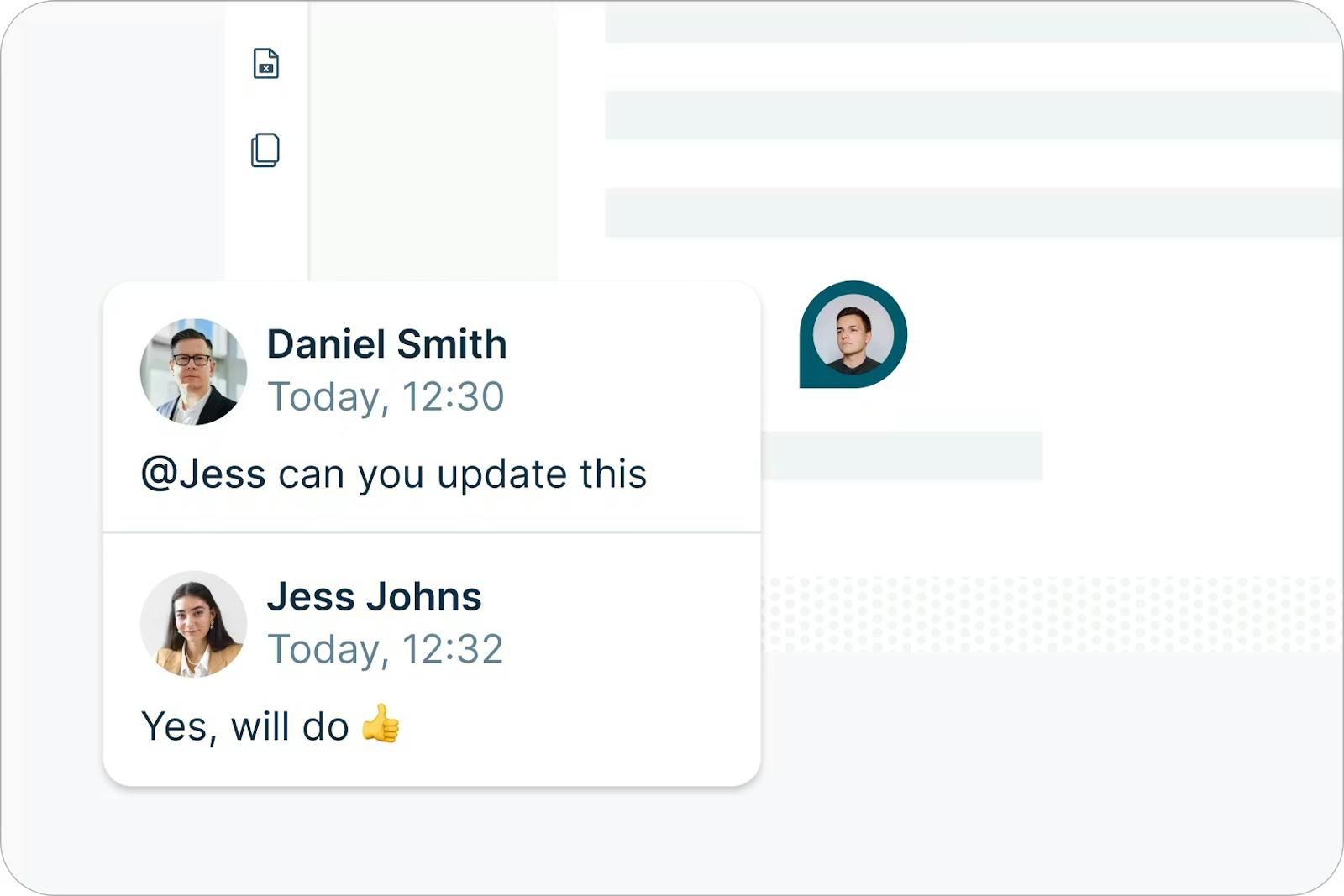 Colabora en tiempo real en un espacio de trabajo digital compartido: etiqueta a compañeros, deja comentarios y crea Espacios para asegurarte de que el trabajo interno se mantiene organizado y eficiente.
