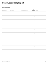 The Construction Daily Report Template helps project teams capture key information about daily site activities. It records workforce attendance, work performed, materials delivered, equipment usage, and site conditions. The template also includes sections for documenting delays, safety incidents, and progress notes, making it a practical tool for contractors, supervisors and clients.