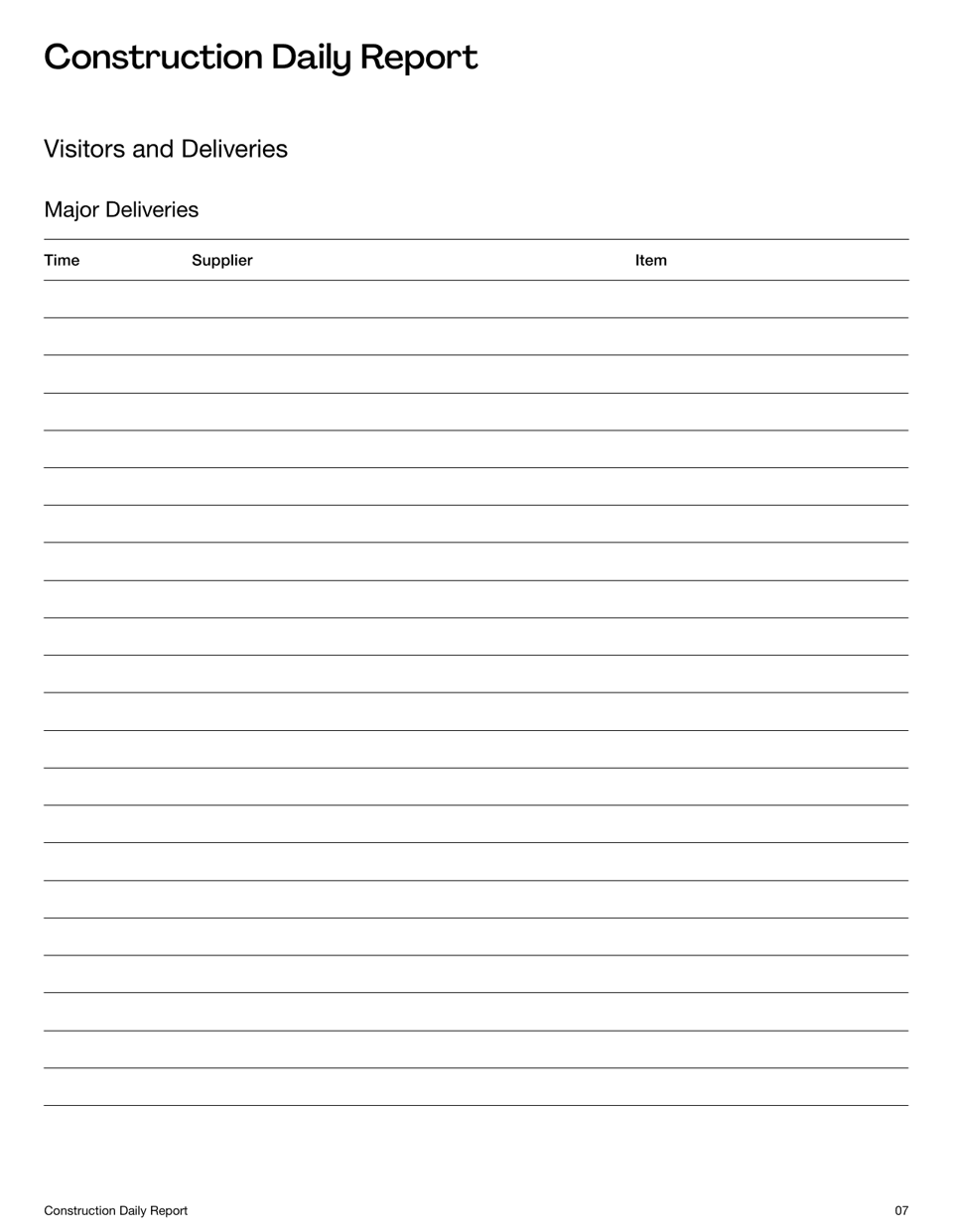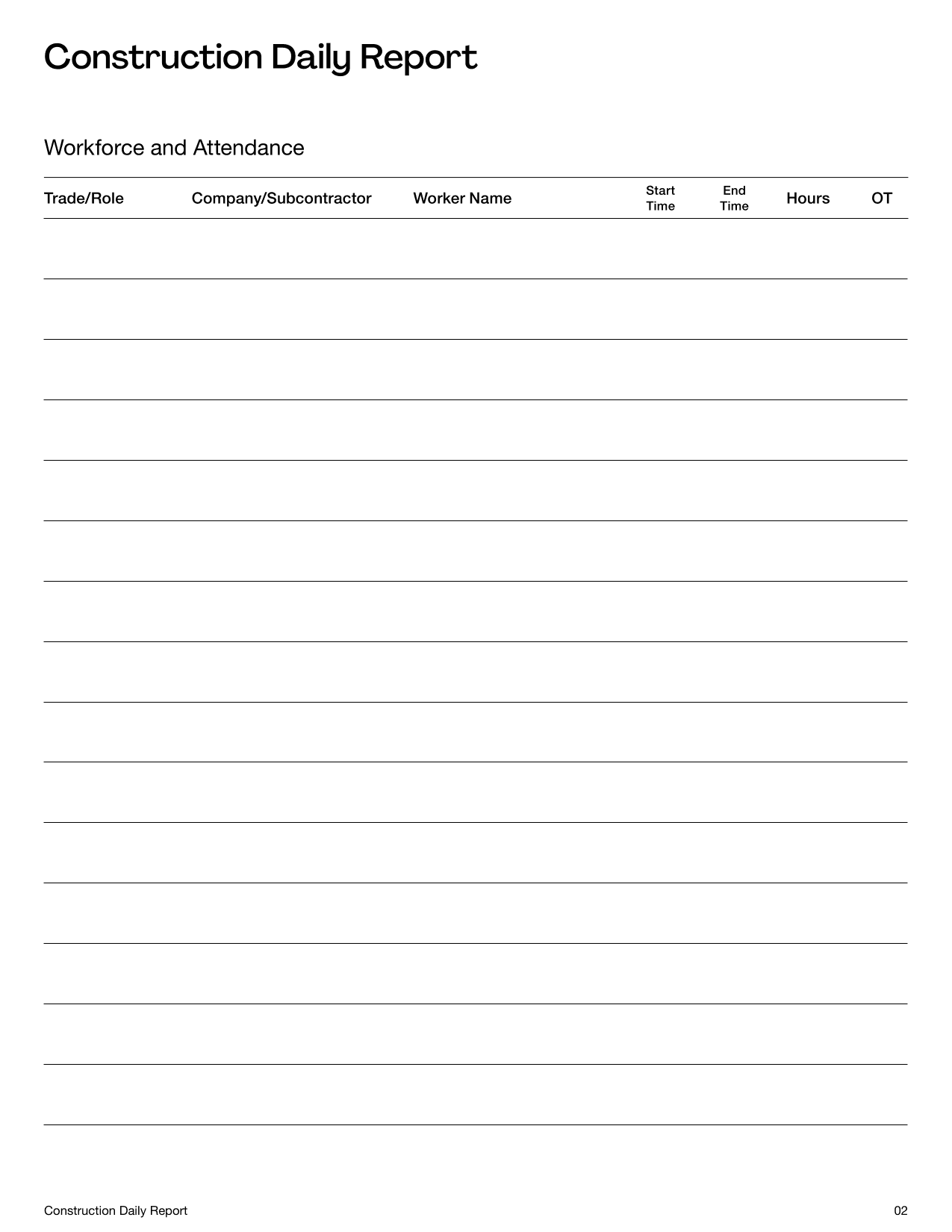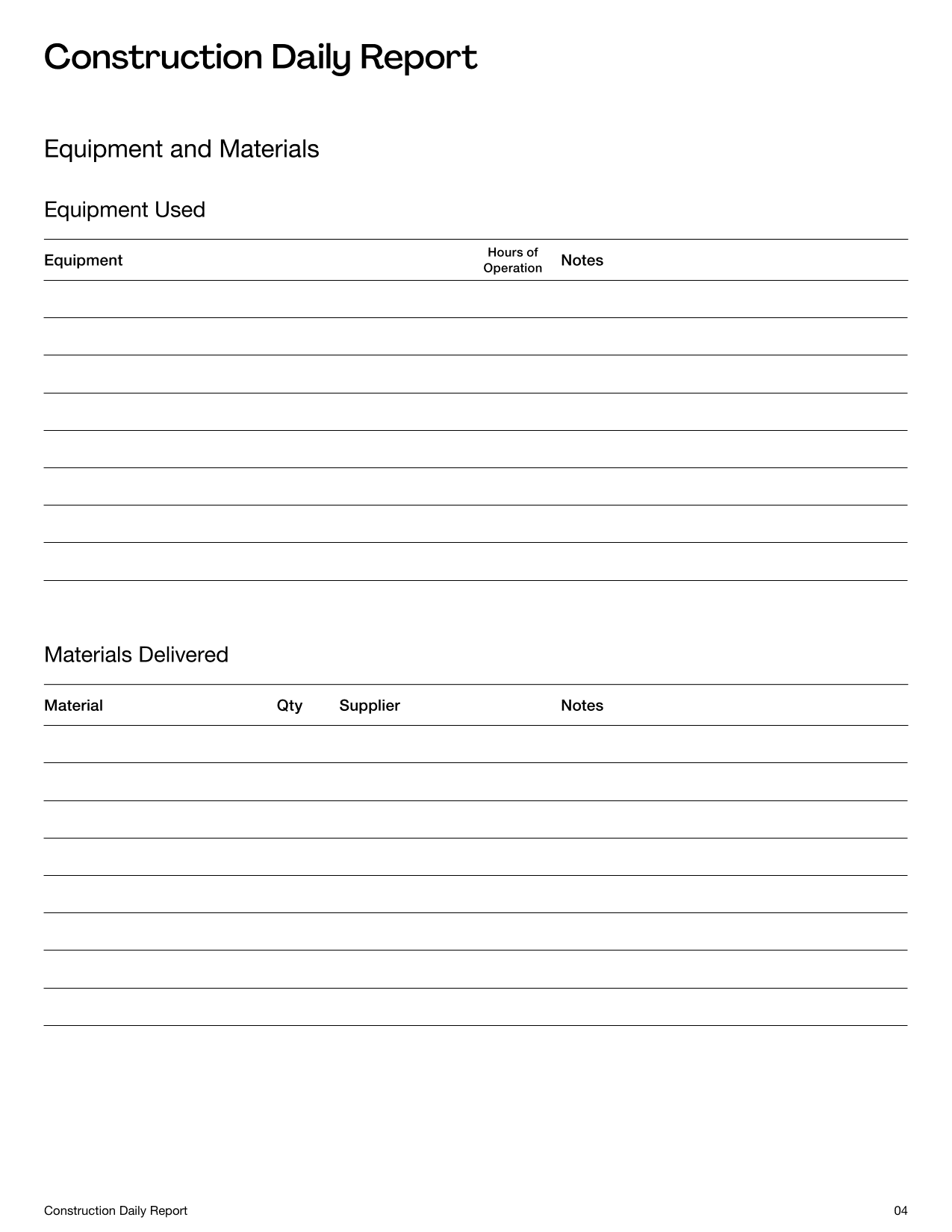 Construction Daily Report Template