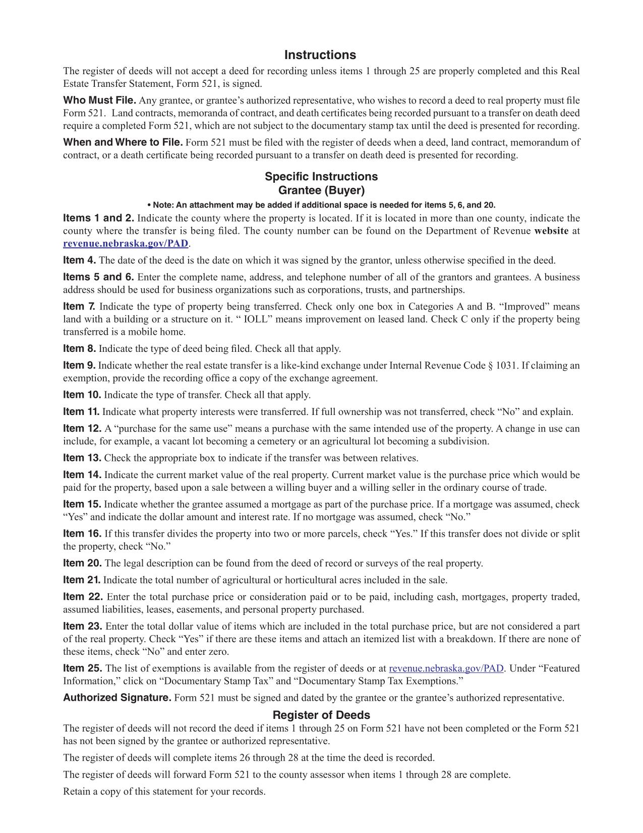 The Form 521 (2013) is used for real estate transfer. The form includes details of property, grantor, grantee, and transfer specifics.