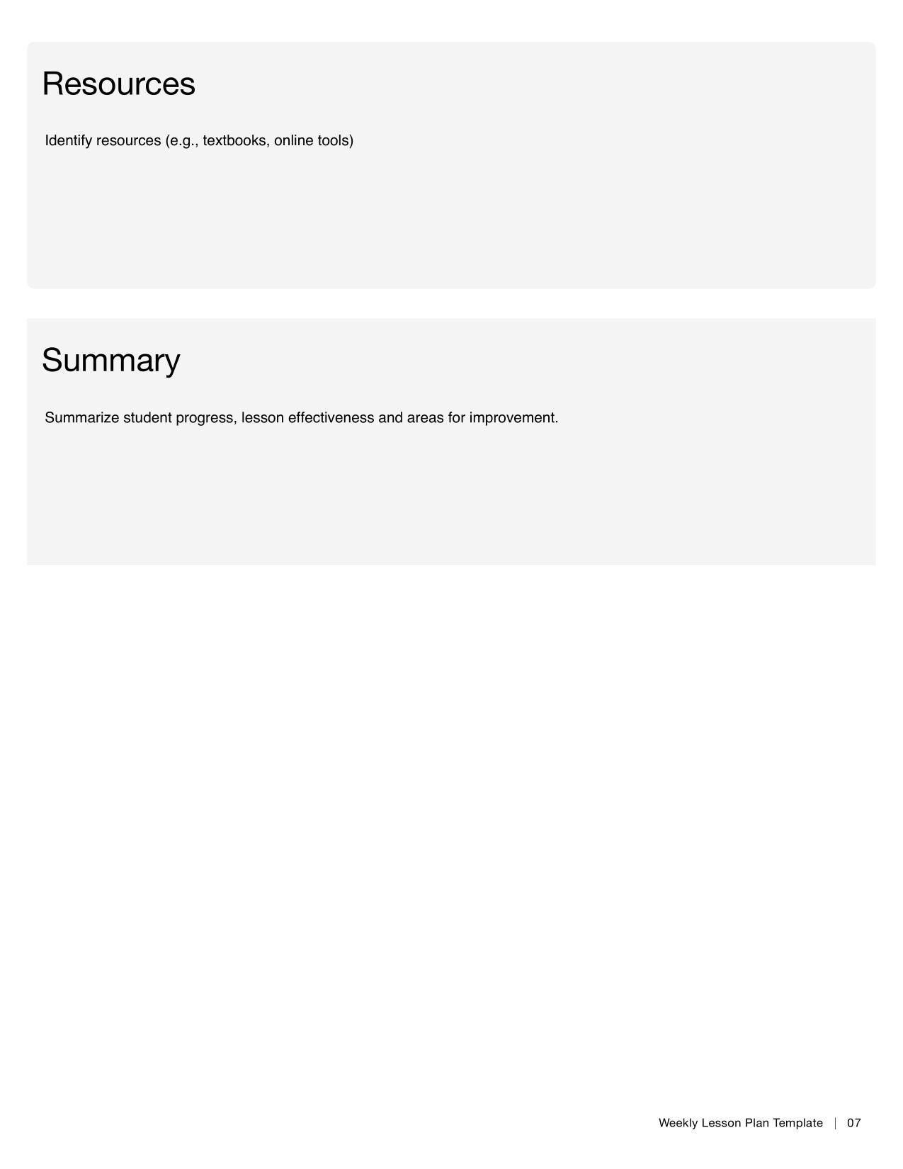Weekly Lesson Plan Template