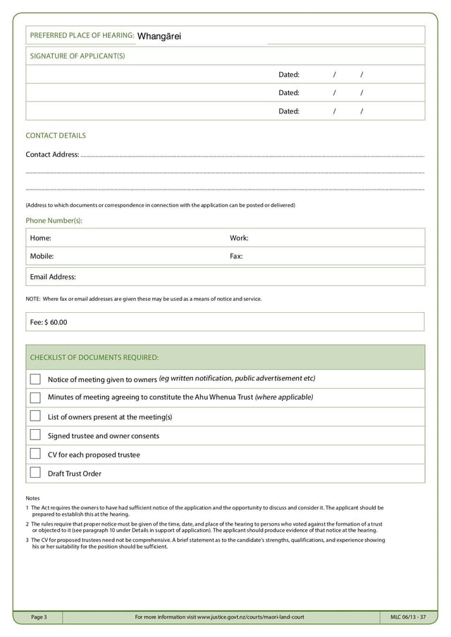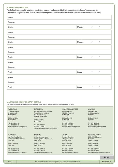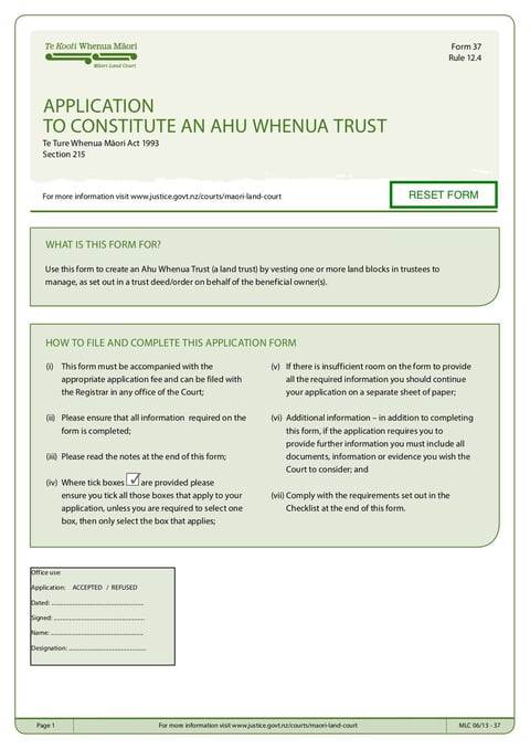 MLC Form 37 is used to establish an Ahu Whenua Trust in Maoriland Court.