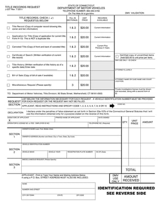 The Form J-23T (2011) is a request form used for obtaining title records and related information from the Department of Motor Vehicles in Connecticut.