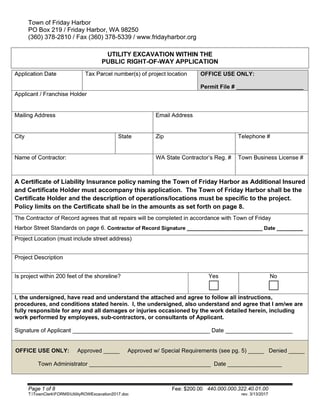 The Friday Harbor Sewer Service Application is for a sewer service connection in Friday Harbor, WA.