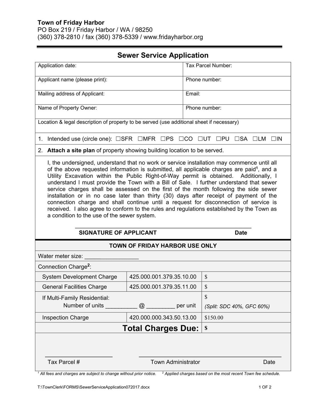 - Friday Harbor Sewer Service Application