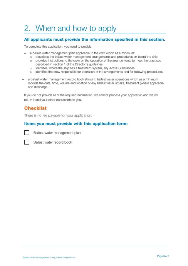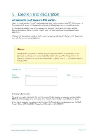 The BWM Equivalent Compliance Form is used by commercial operators in the maritime industry to report compliance with Ballast Water Management regulations.