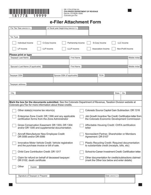 The Form DR1778 is used to submit necessary tax documents to the Colorado Department of Revenue.