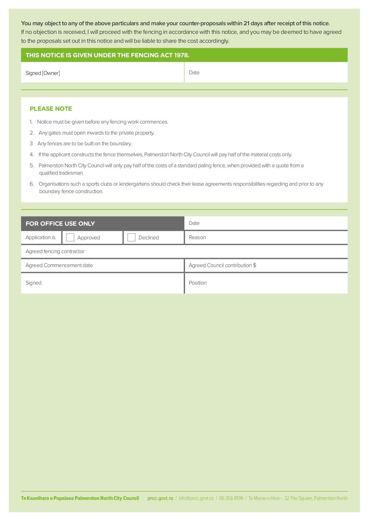 Notice of Intent to Erect or Repair a Common Boundary Fence - Sep 2021