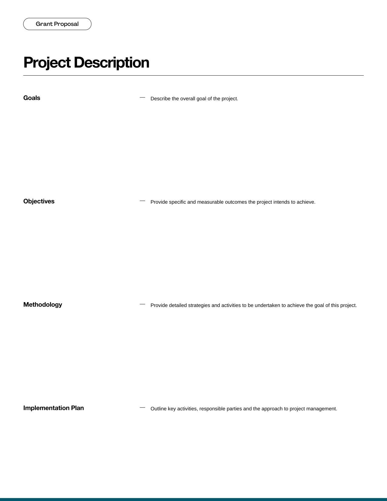 Our Grant Proposal Template offers a structured approach covering every essential section, from an executive summary to a comprehensive budget. It provides an organized format for clearly presenting project goals, making the application more compelling and accessible for reviewers to assess. This template is designed to streamline the application process and improve chances of securing funding.
