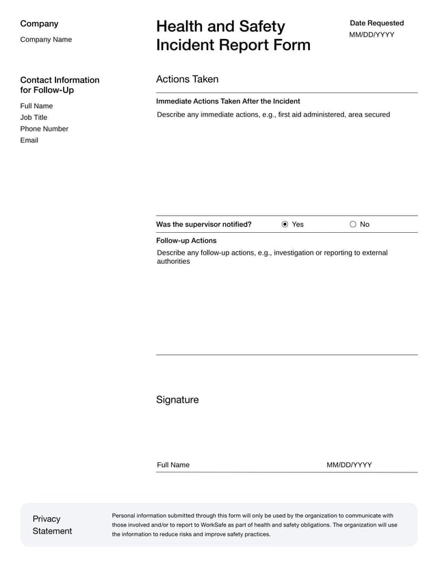 Health and Safety Incident Report Fosrm Template for New Zealand
