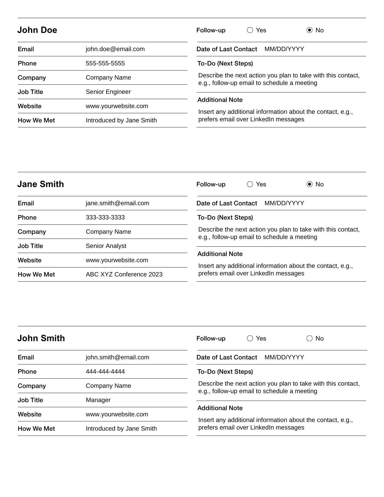 - Networking Contact List Template