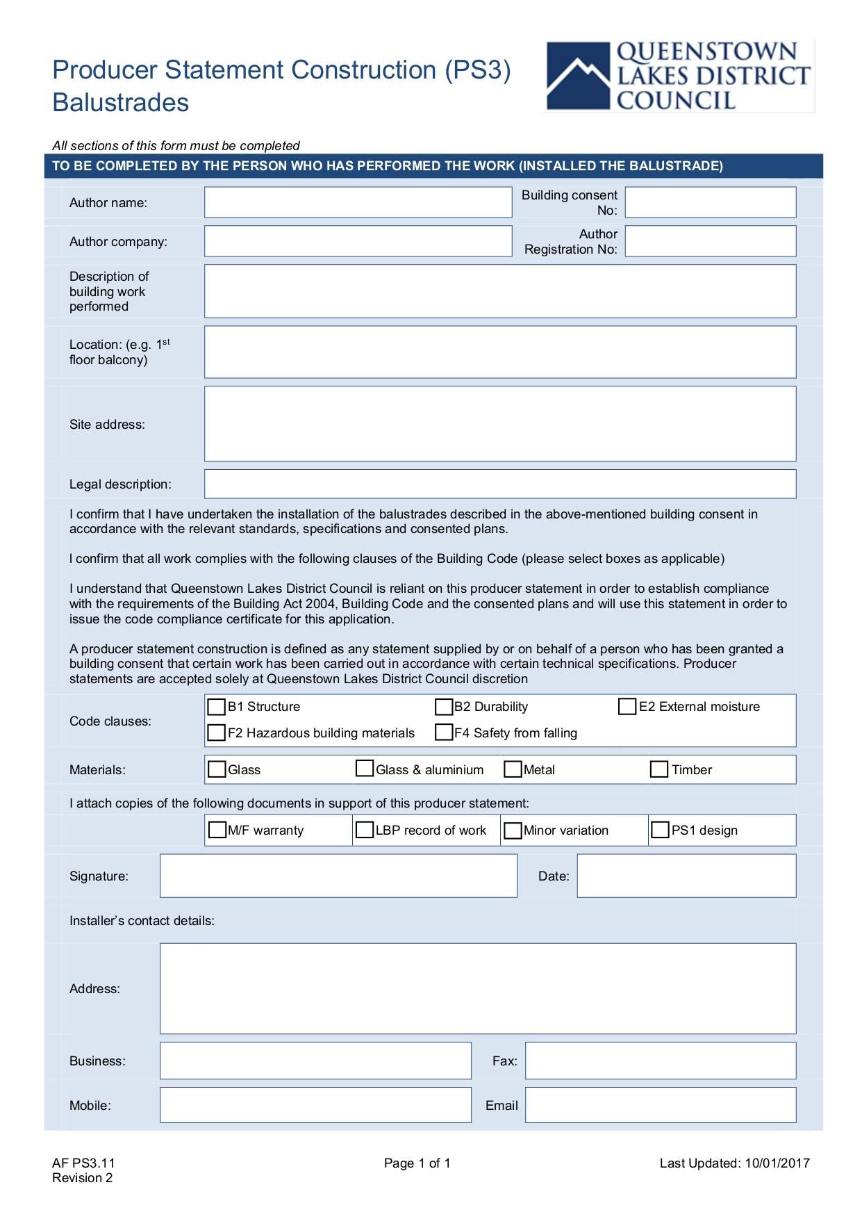 Producer Statement Construction (PS3) Balustrades - Oct 2017