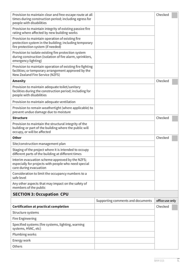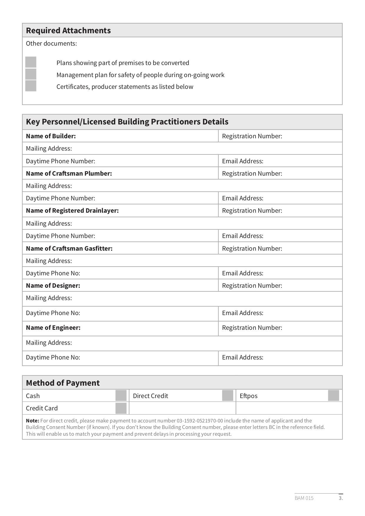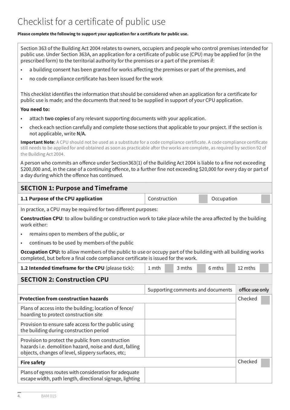 BAM 015 Certificate for Public Use Application Form is an application form used to request the usage of public facilities. This form is required to be filled by individuals or organizations who wish to use public facilities and need to submit their request to the Ashburton District Council.