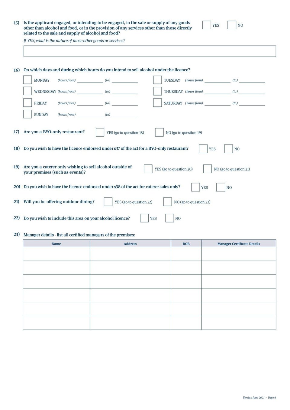 The Alcohol On-Licence Application Form is used by businesses to apply for a new on-licence for the sale and supply of alcohol.