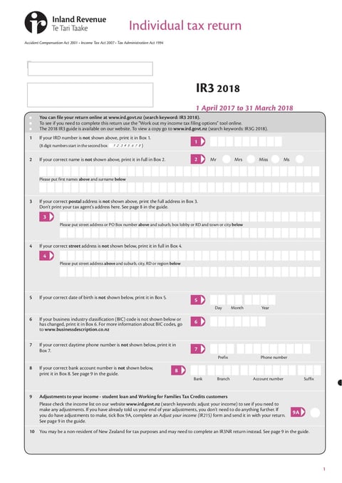 - Form IR3 - Mar 2018