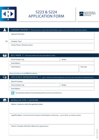 The S223-224 Application Form is used for individuals or organizations applying for the subdivision of land.