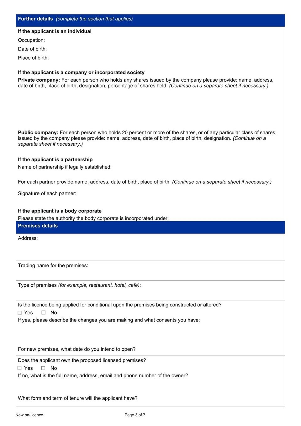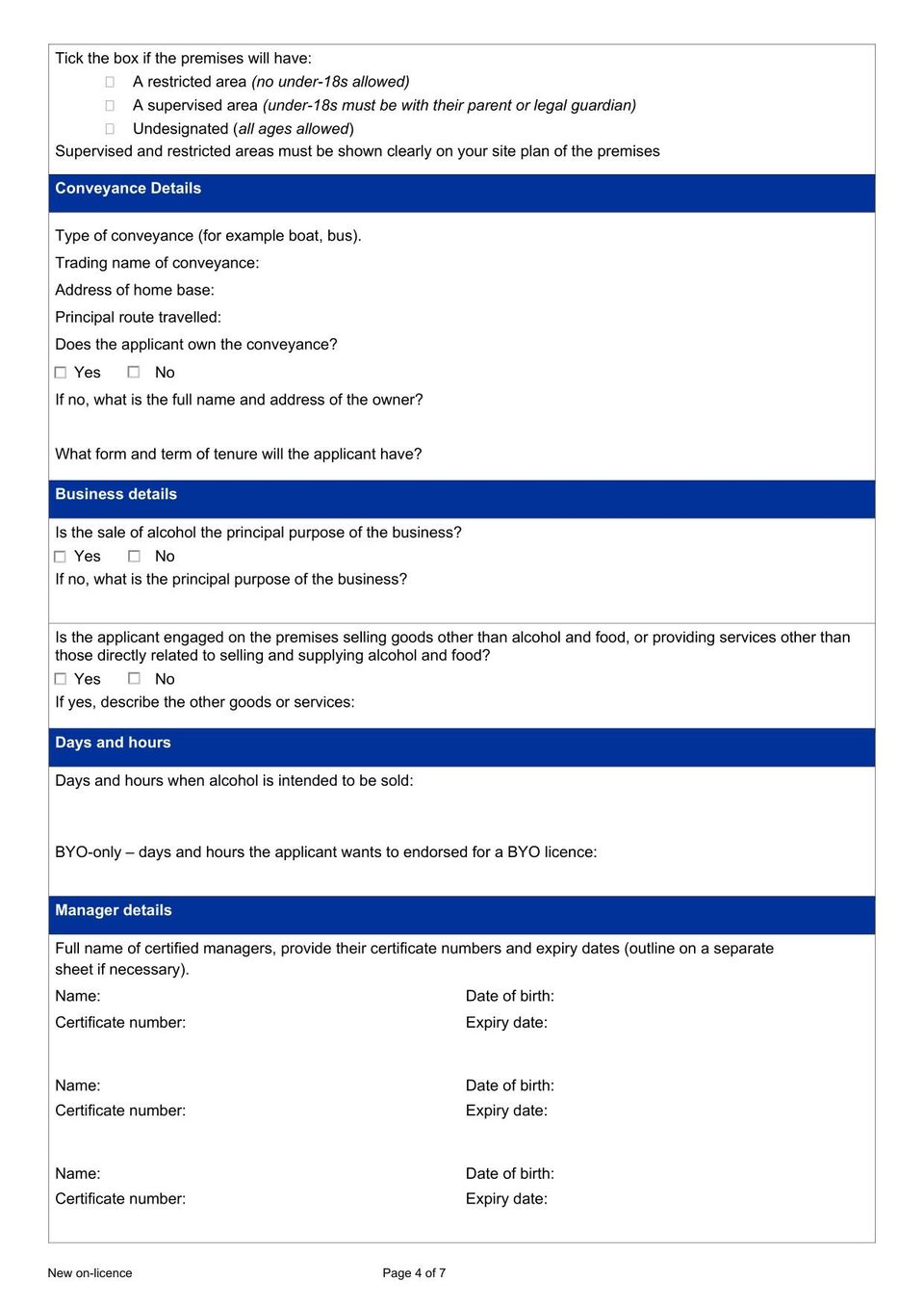 - New Zealand Application for a New On-Licence