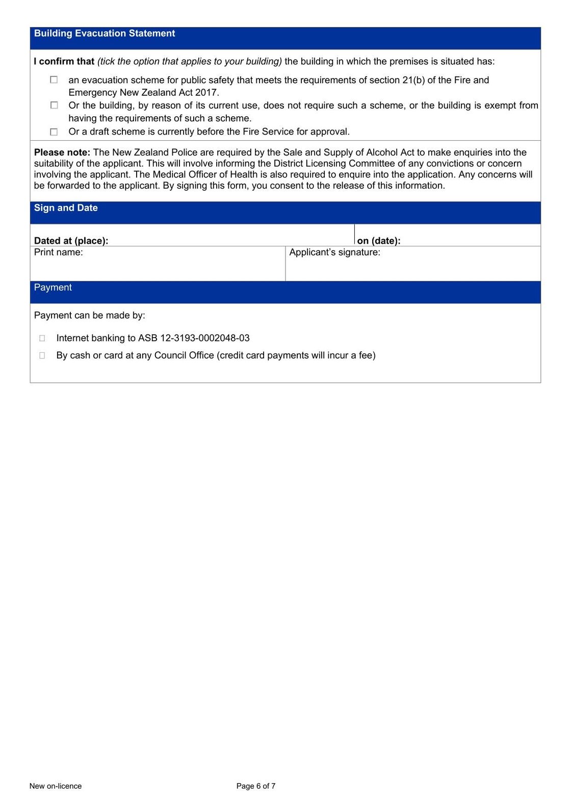 New Zealand Application for a New On-Licence