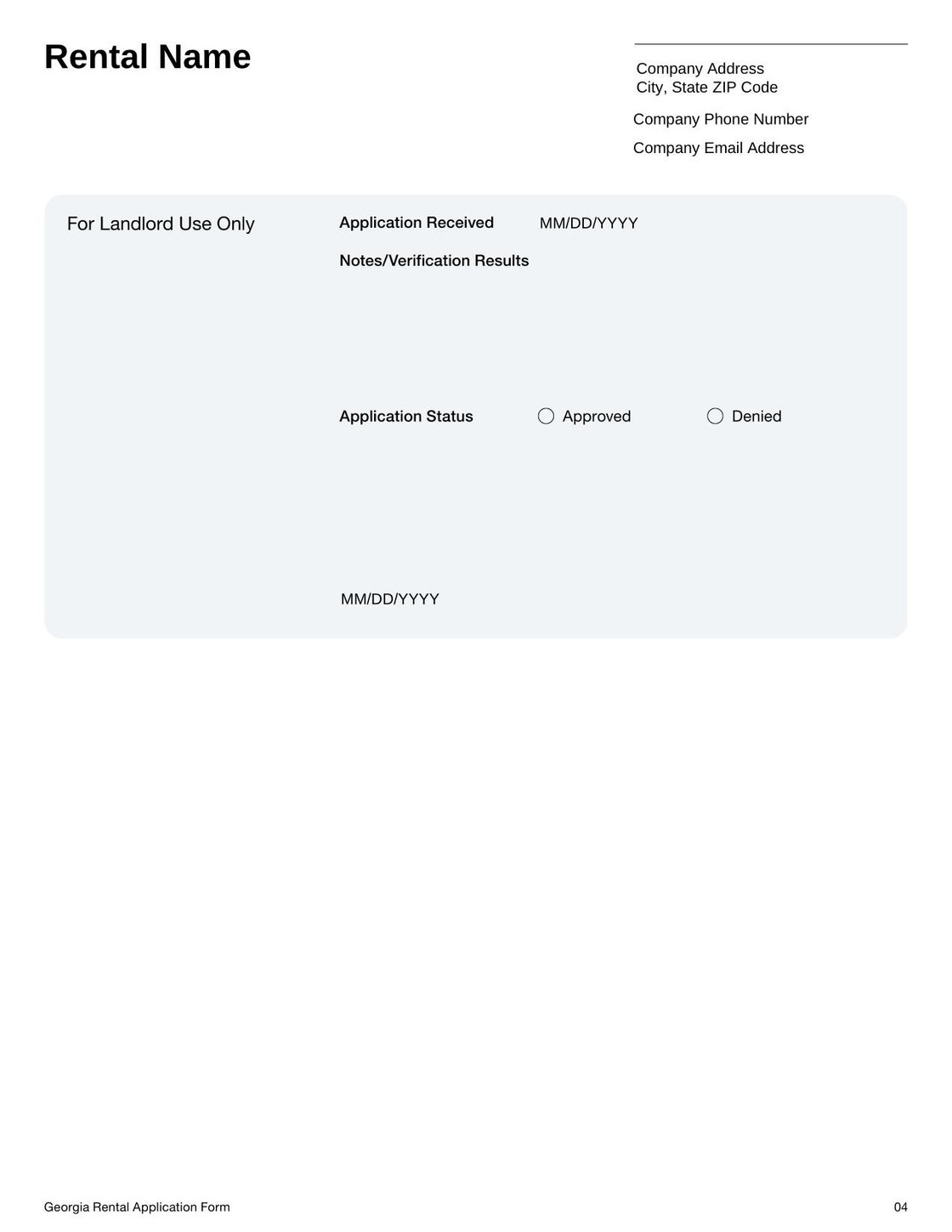 Rental Application Form Georgia Template