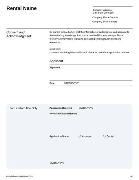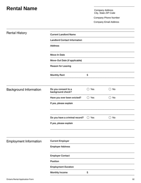 - Rental Application Form Ontario Template