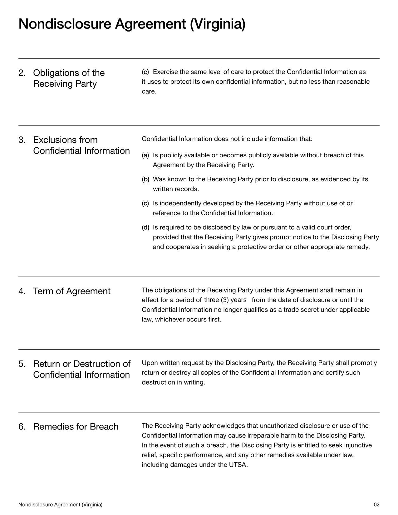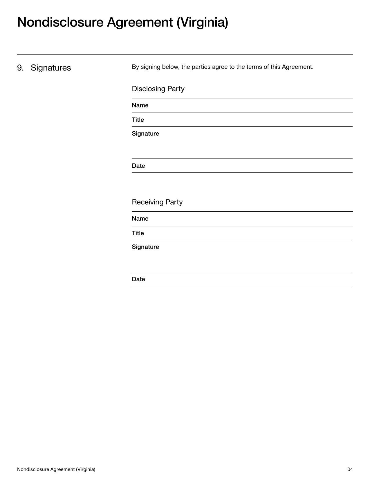 Virginia Nondisclosure Agreement Template