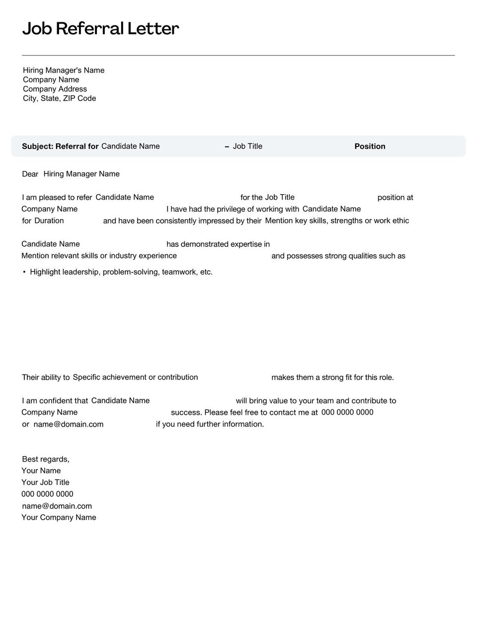 A Job Referral Letter Template is a preformatted document used to recommend a candidate for a job based on their skills, experience and qualifications. It provides a structured way for employers, colleagues or mentors to endorse an applicant to a potential employer.