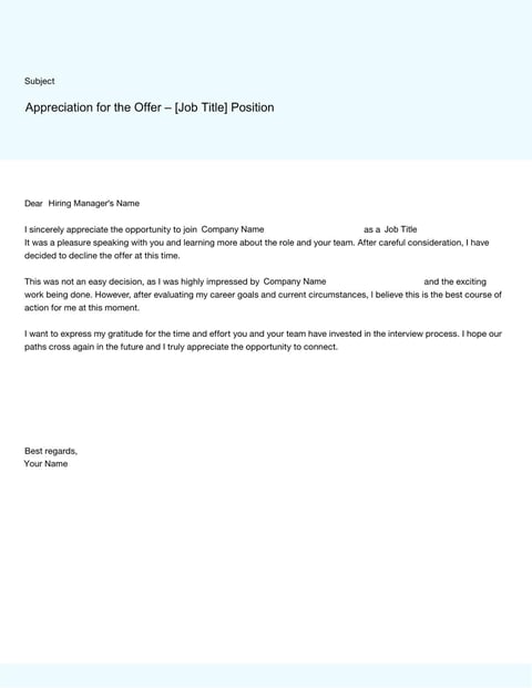 A Job Rejection Letter is a formal response sent by job seekers to decline a job offer. It politely informs the employer of their decision while maintaining professionalism and appreciation for the opportunity.