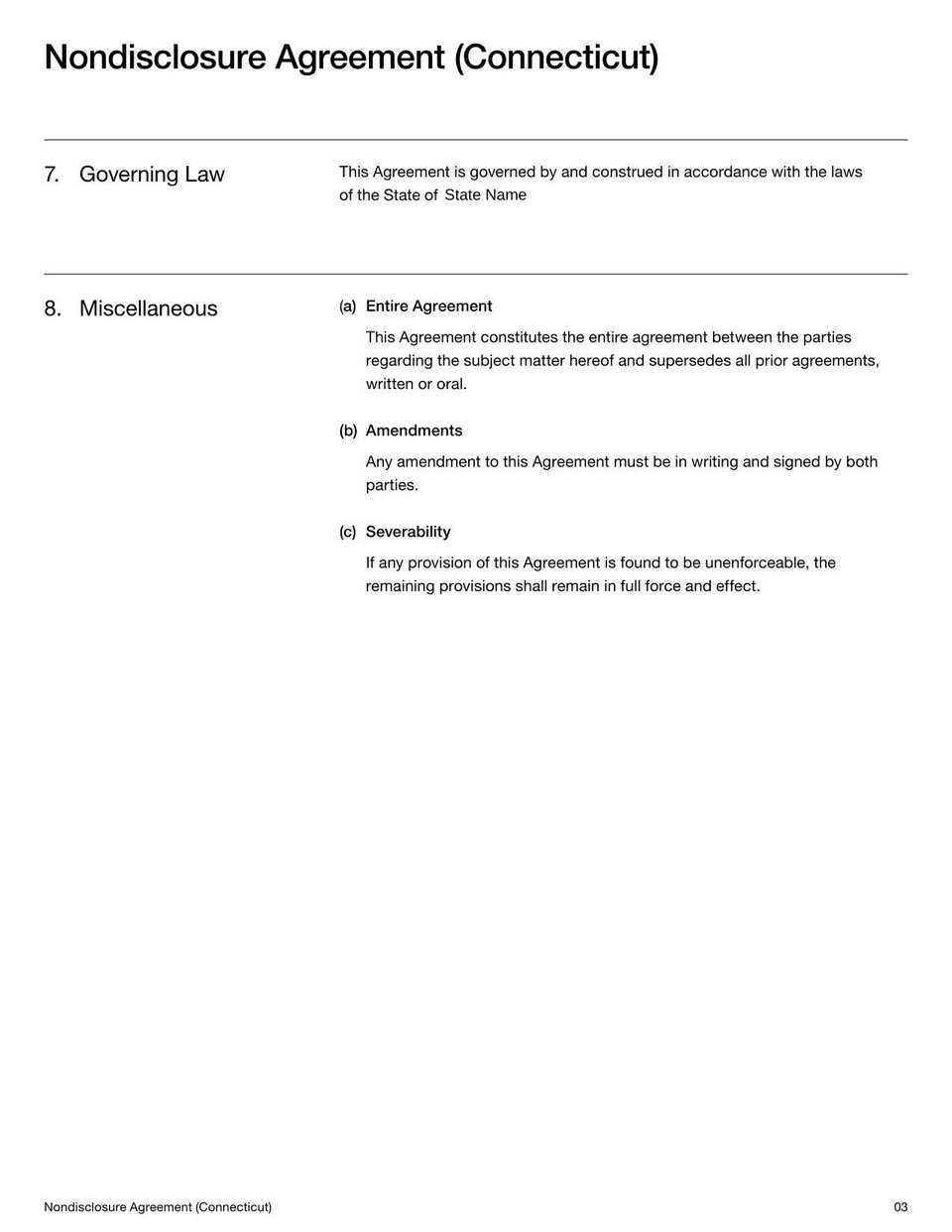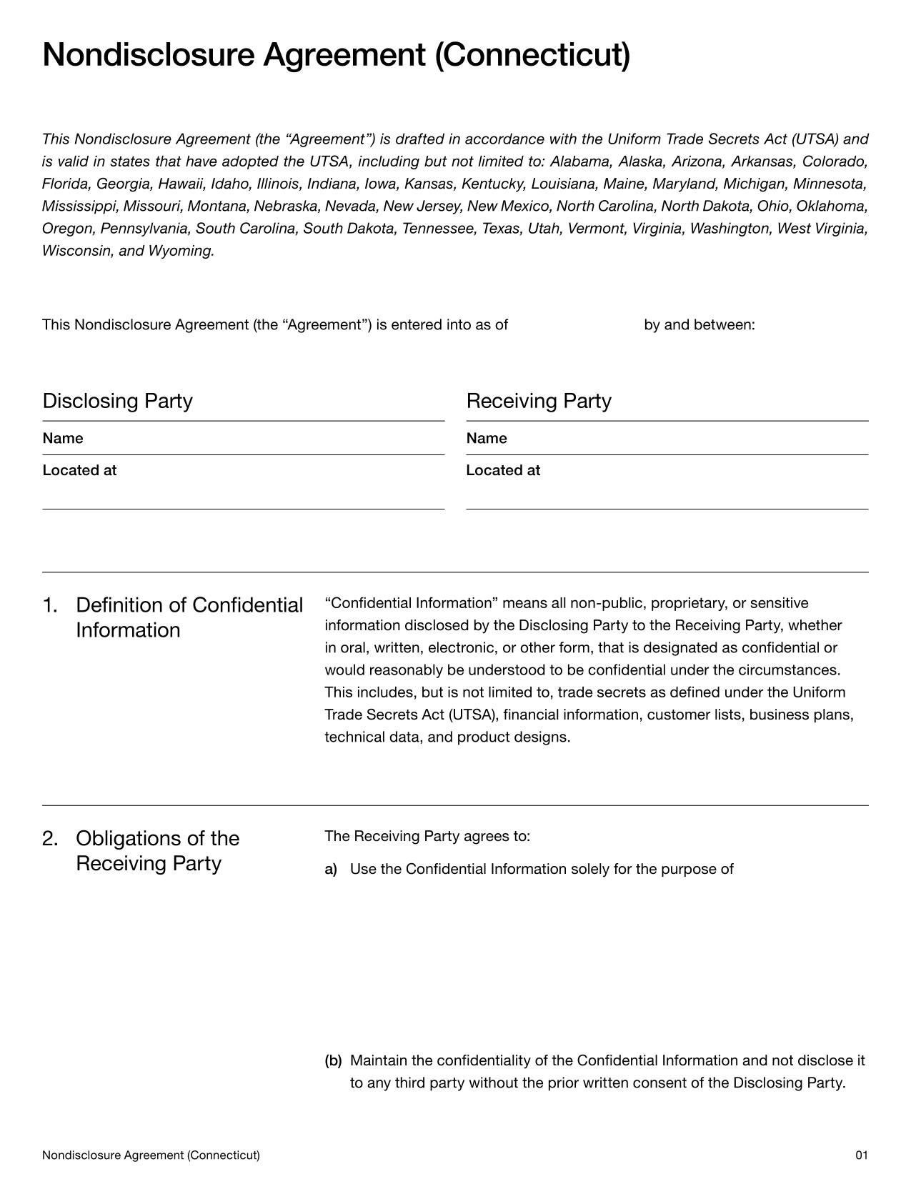 Connecticut Nondisclosure Agreement Template