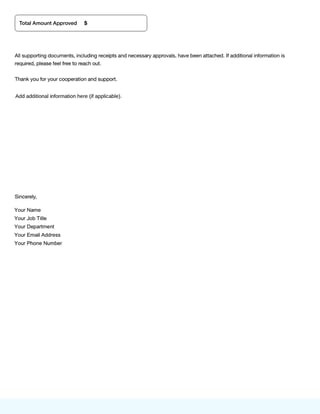 A Reimbursement Letter is a formal request for repayment of expenses paid by an employee. It includes details such as the expense amount, date, purpose and any supporting documents required for approval. Submitting this letter ensures proper processing and compliance with company policies.
