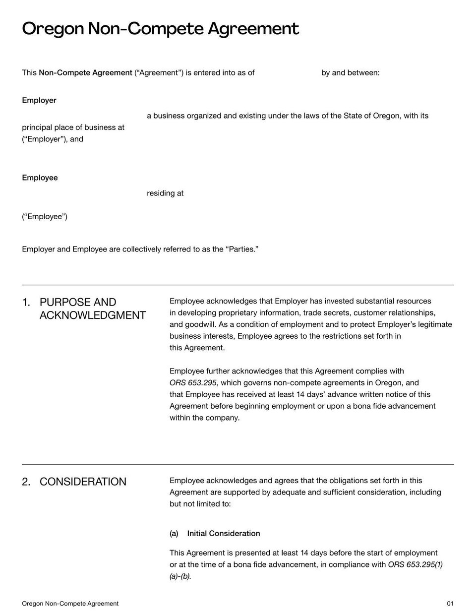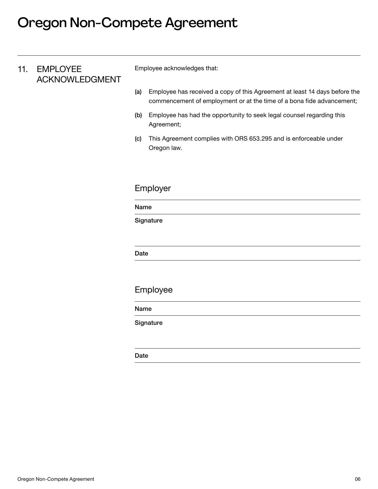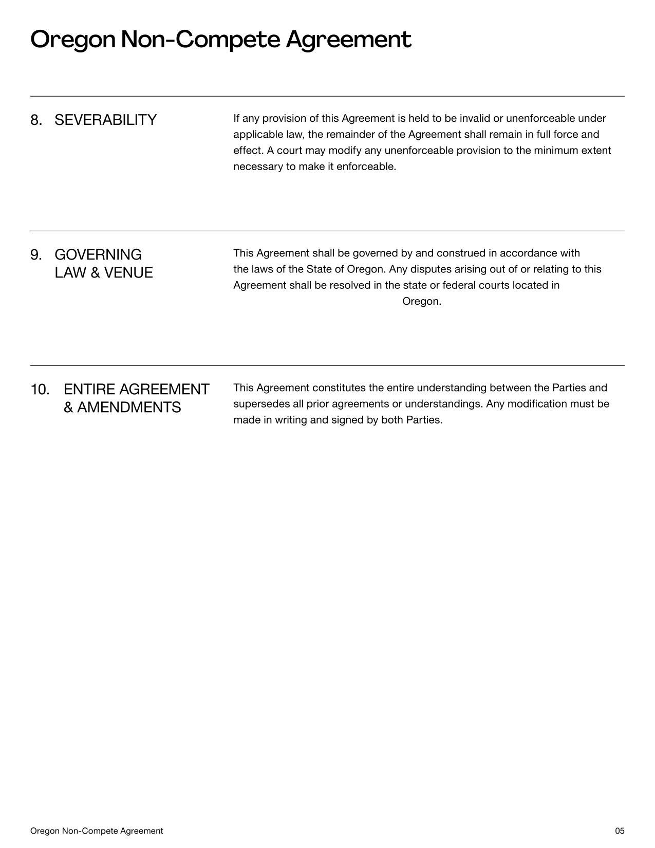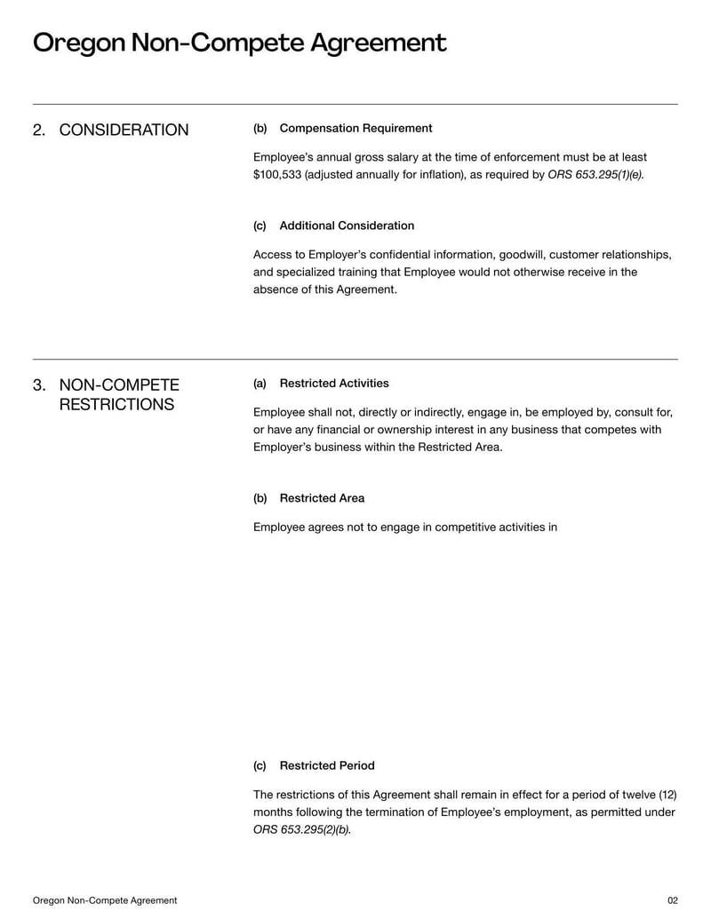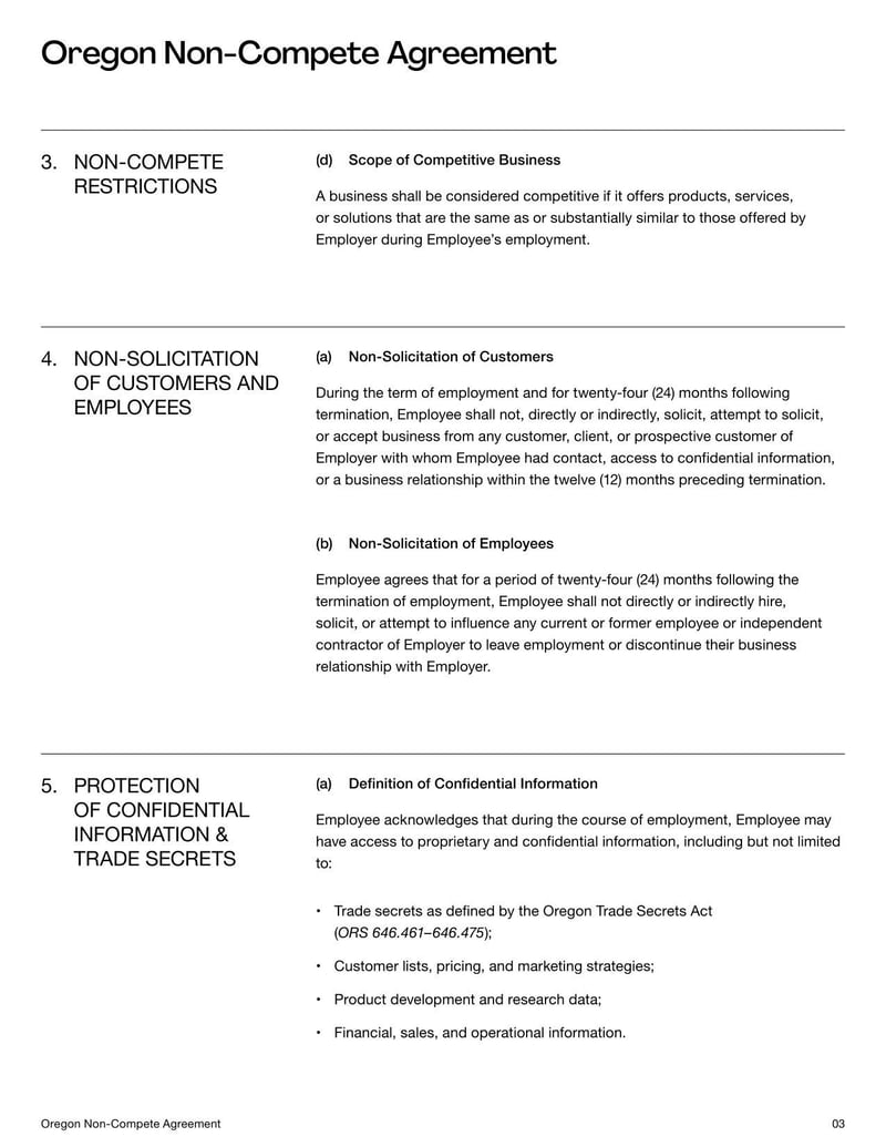 Non-Compete Agreement Oregon Template