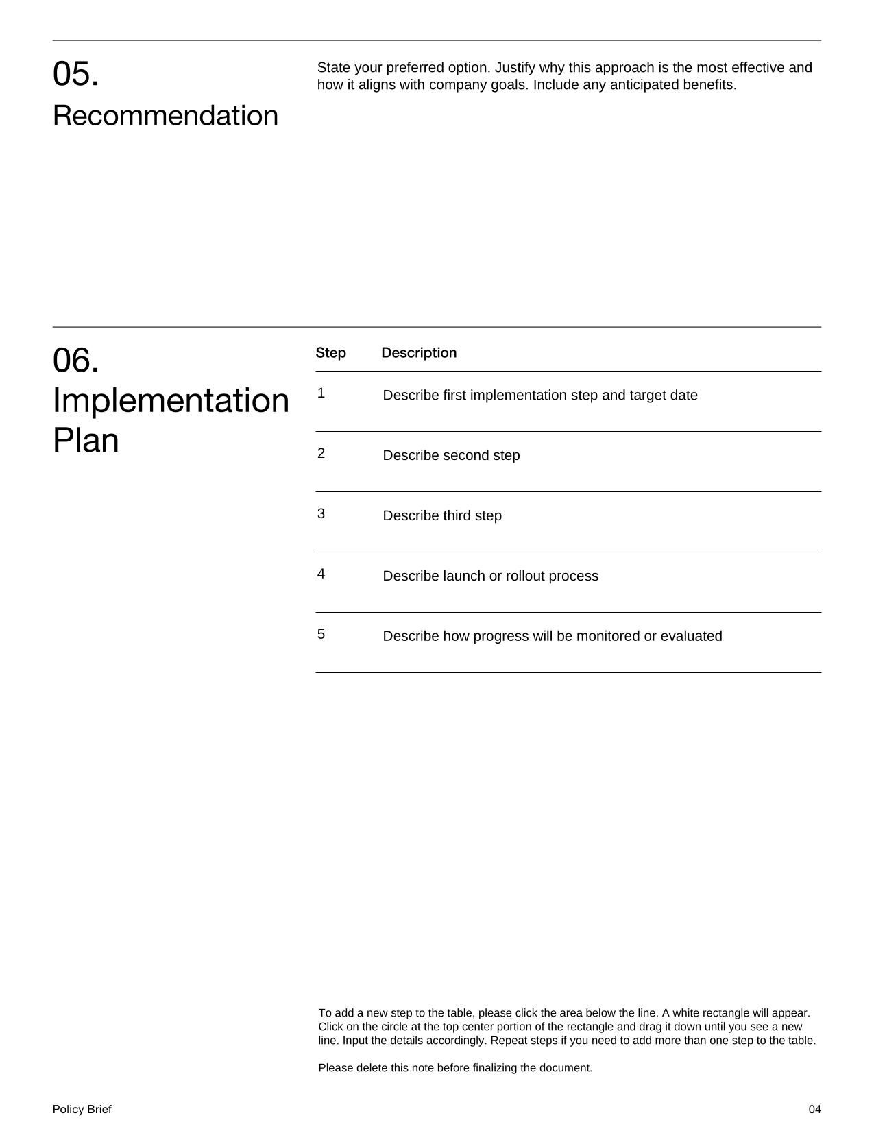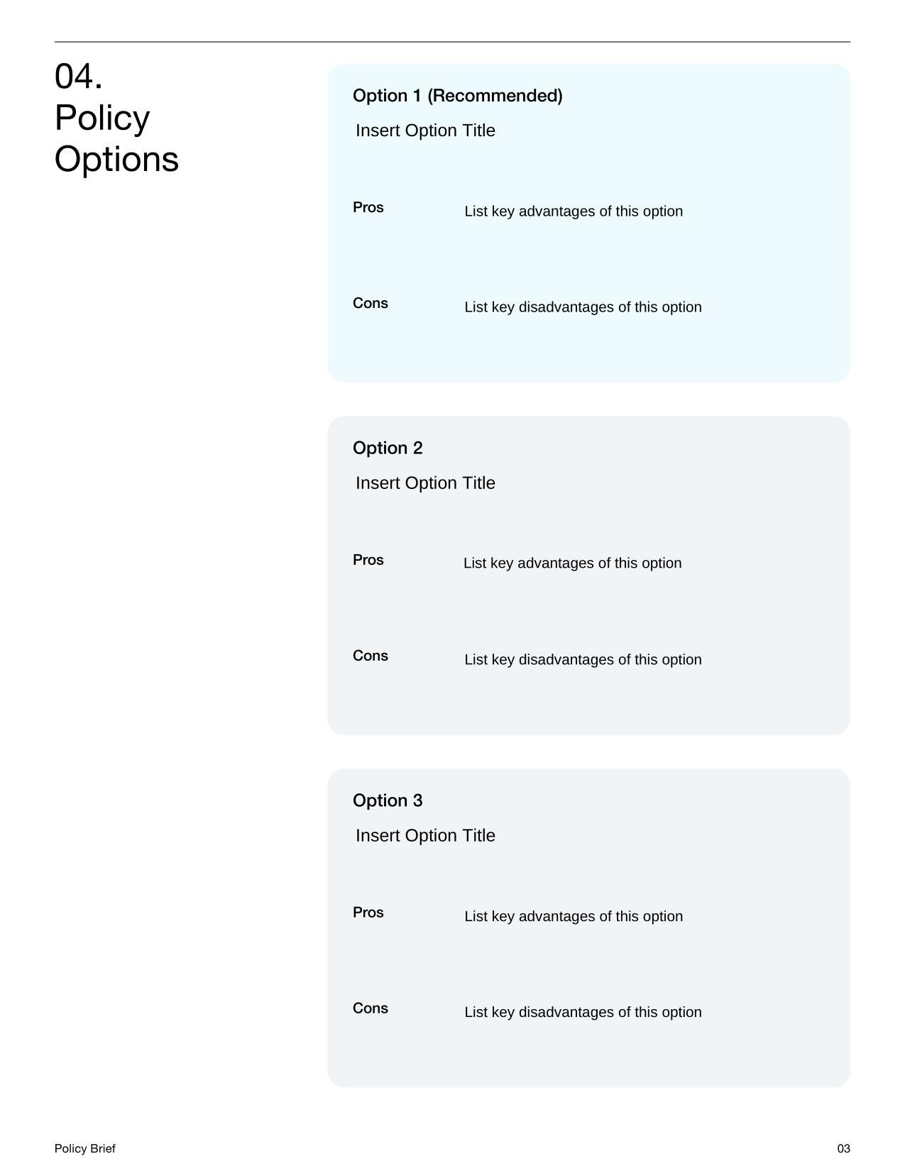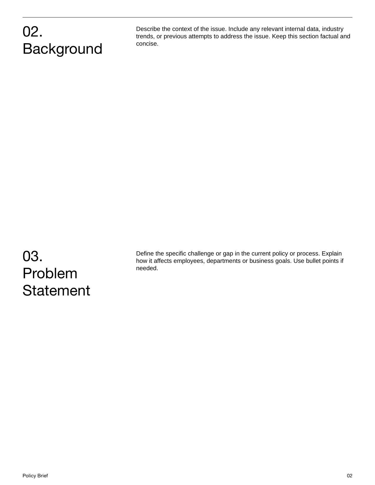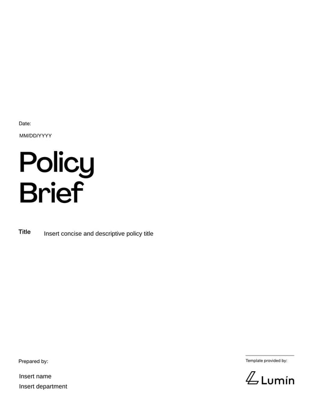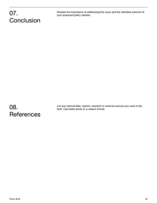 A Policy Brief Template helps companies summarize complex issues and recommend clear solutions. It is used to communicate key points to stakeholders or decision-makers.