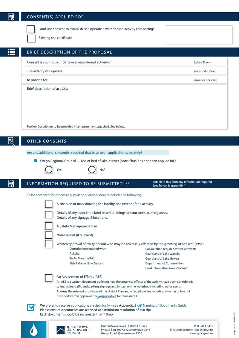 Form 9 Waterbased is a registration form for individuals or organizations conducting waterbased activities.