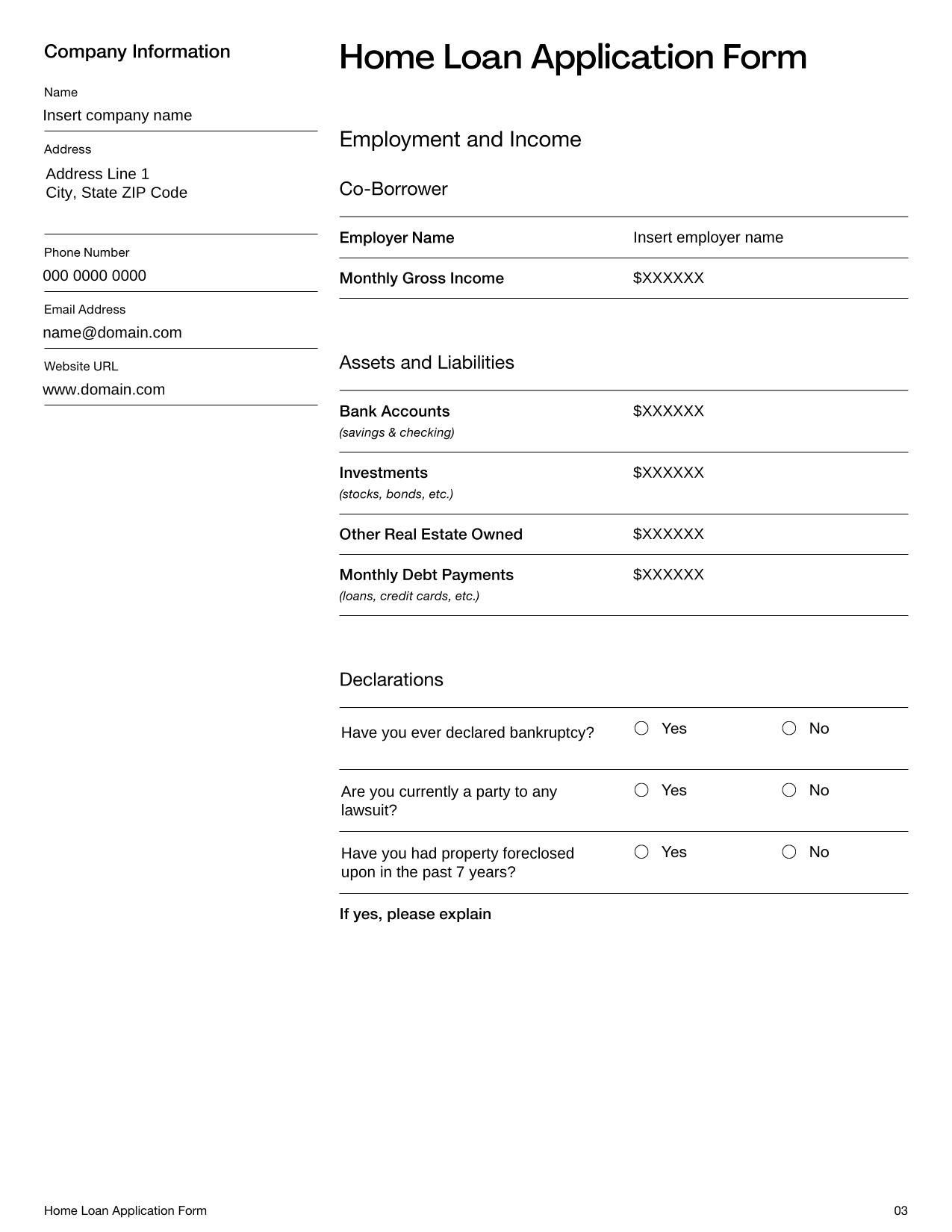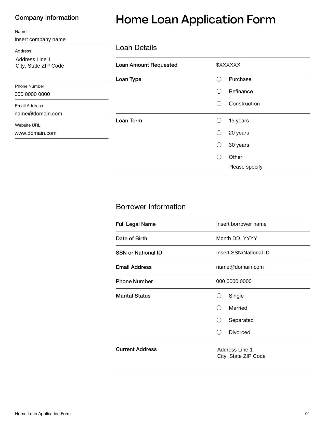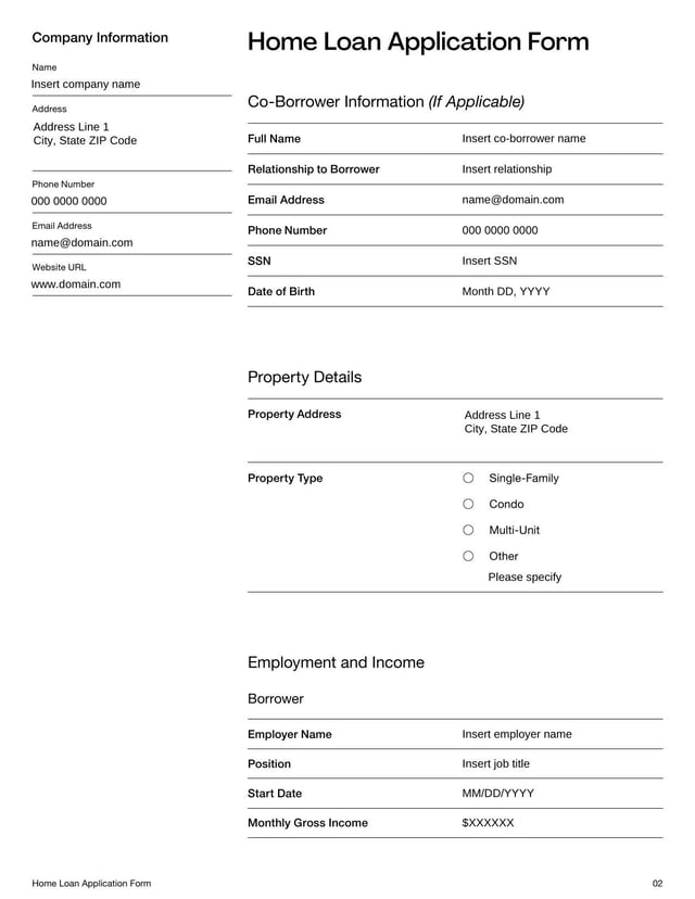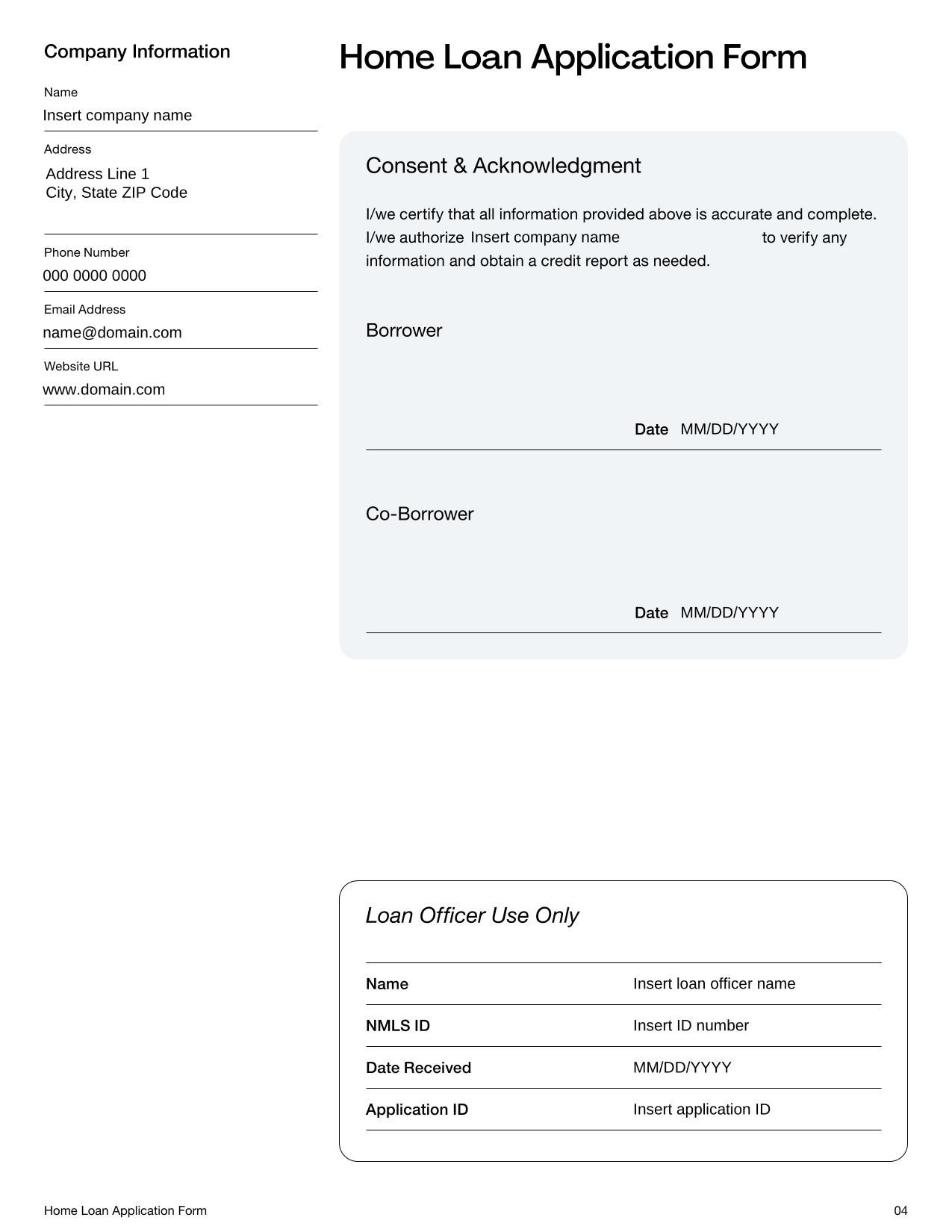 A Home Loan Application Form collects essential personal, financial and employment information from applicants. It helps lenders evaluate eligibility and determine loan terms efficiently.