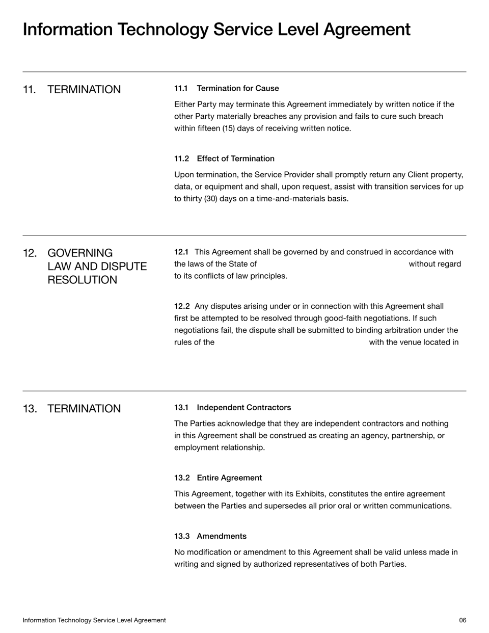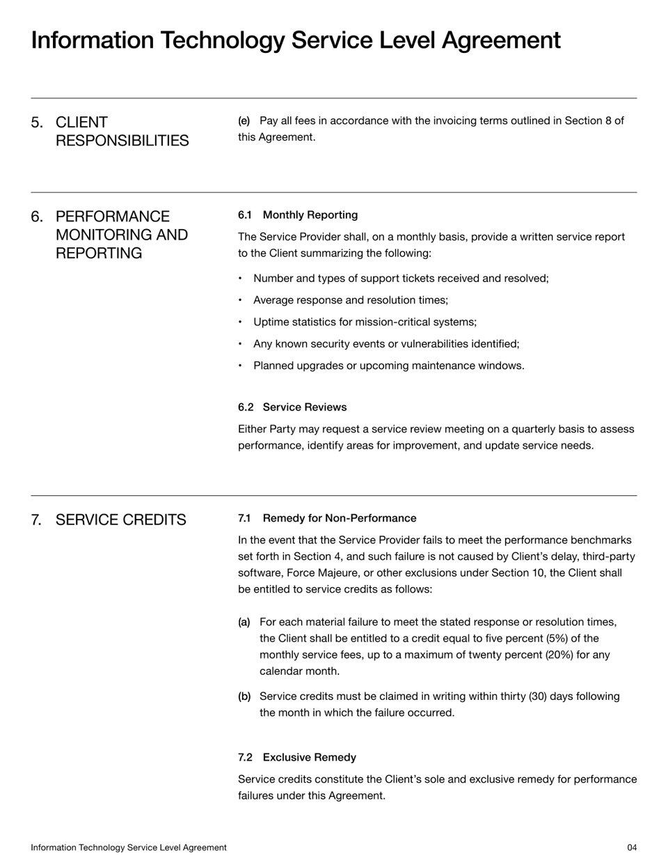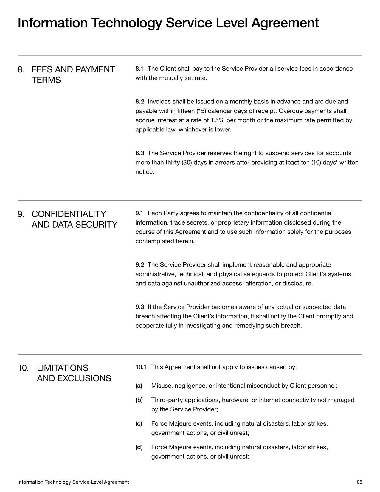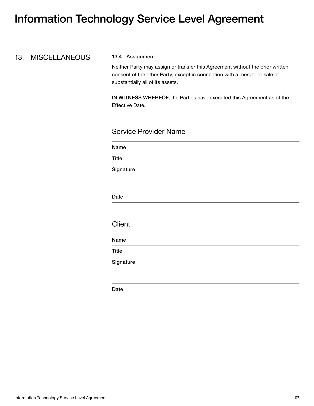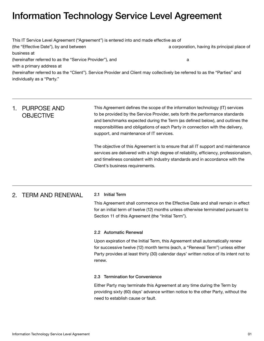 IT Service Level Agreement Template