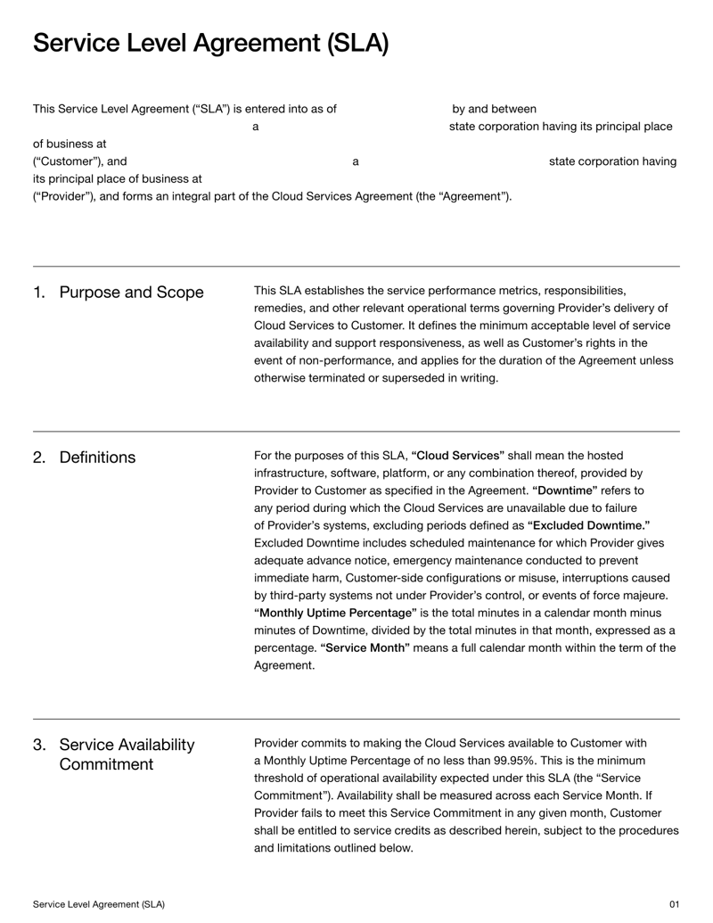 Service Level Agreement in Cloud Computing Template