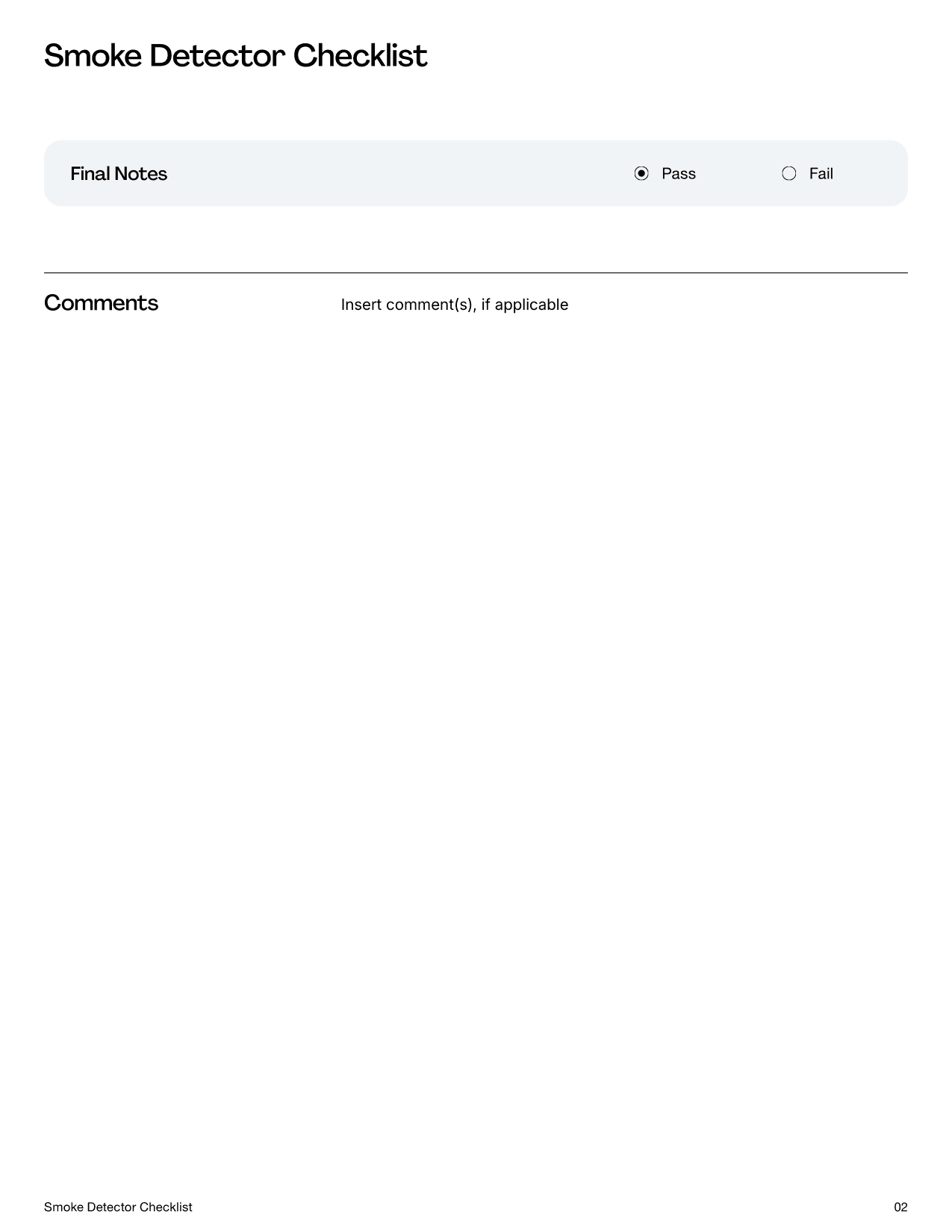 The Smoke Detector Checklist is a tool used to document the inspection, testing and maintenance of smoke alarms. This form can be adapted as a smoke detector monthly inspection checklist to ensure devices remain functional and compliant with safety regulations.