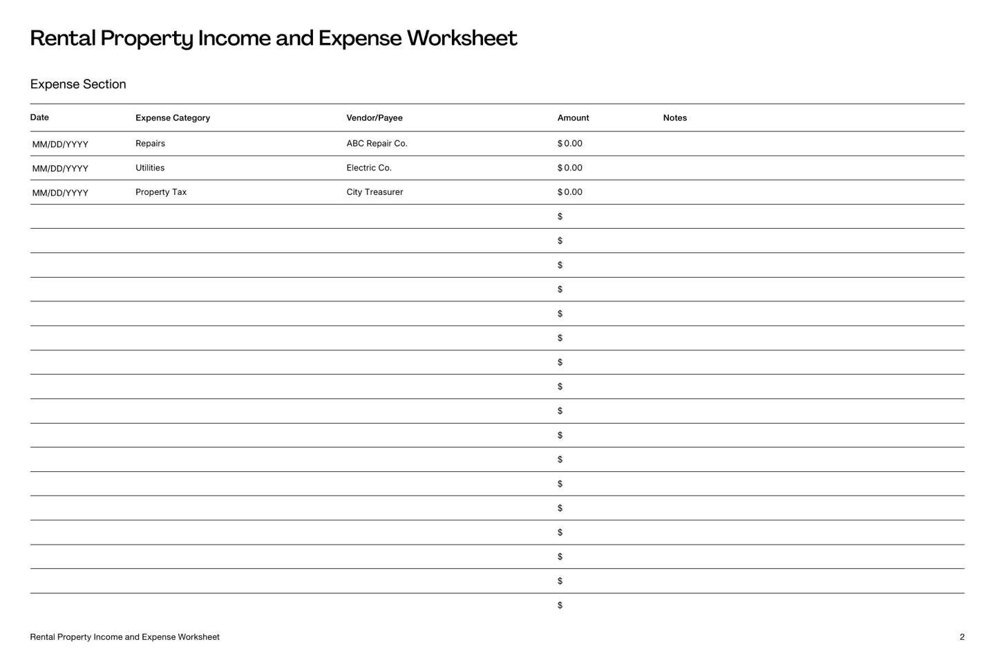 - Rental Property Income and Expense Worksheet Template
