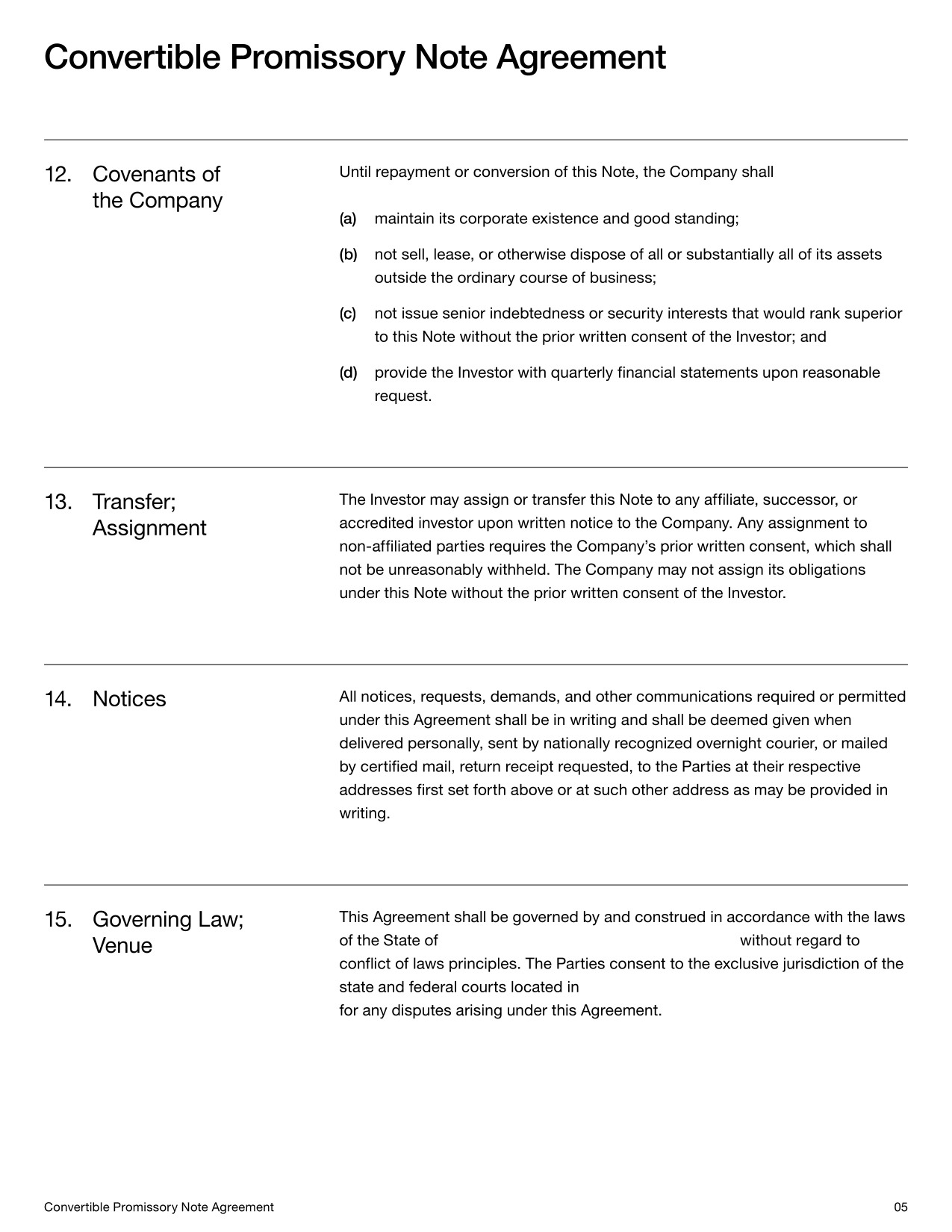 Convertible Note Agreement Template