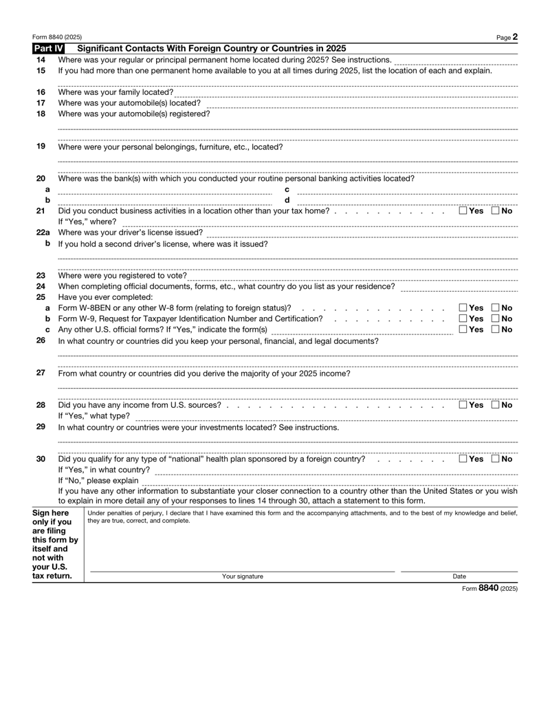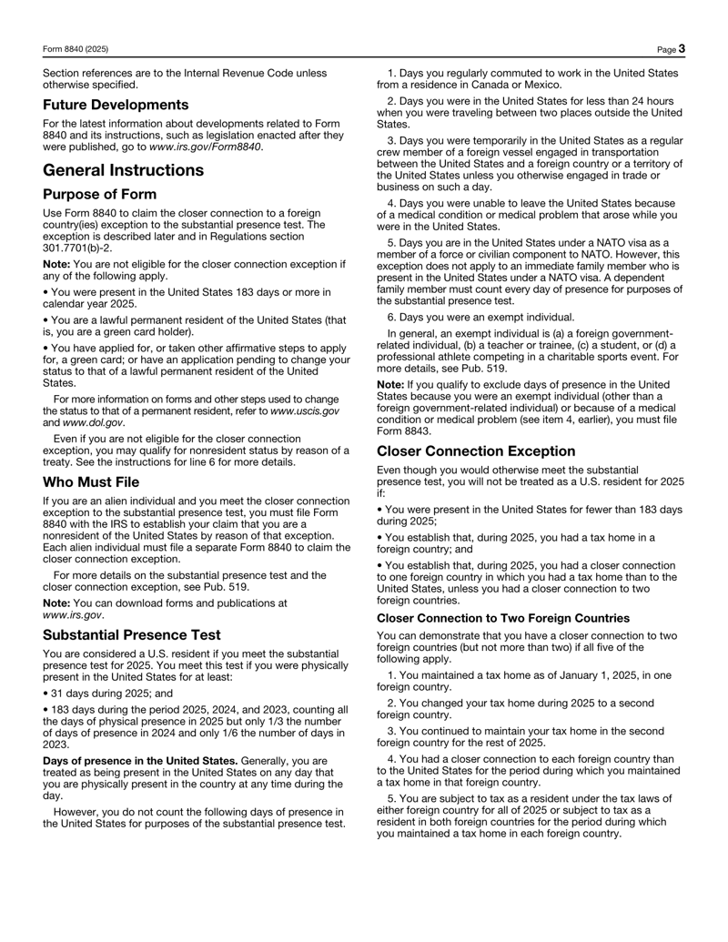 This form is used by alien individuals to claim the closer connection exception to the substantial presence test for tax purposes.