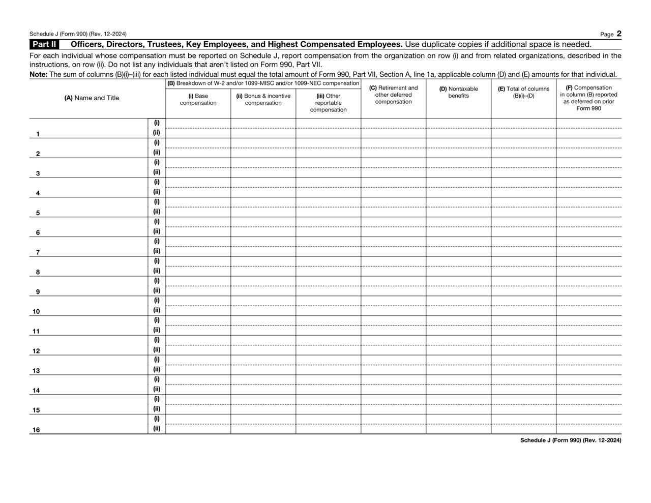 This form is used to provide compensation information for certain officers, directors, trustees, key employees, and highest compensated employees as part of Form 990.