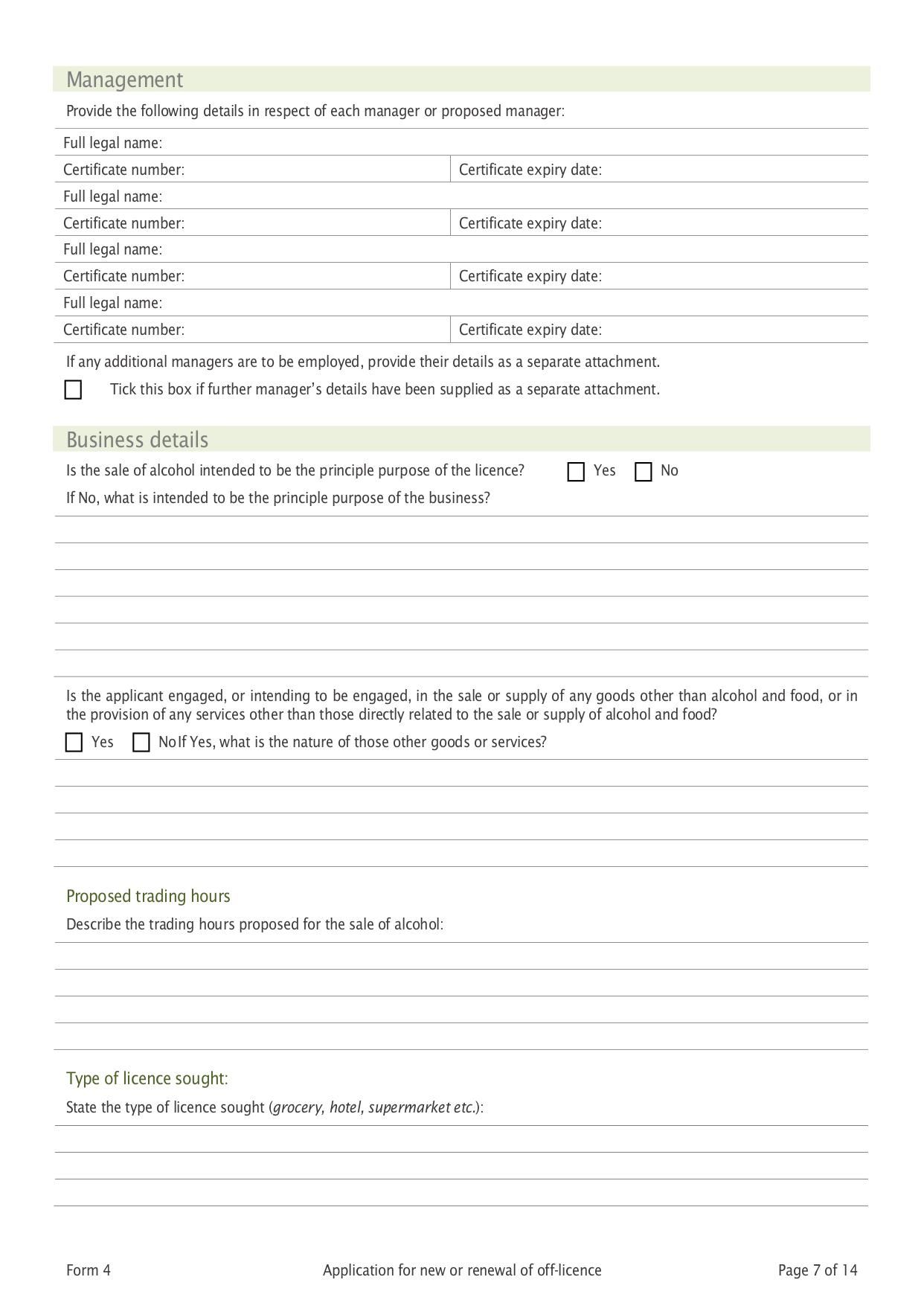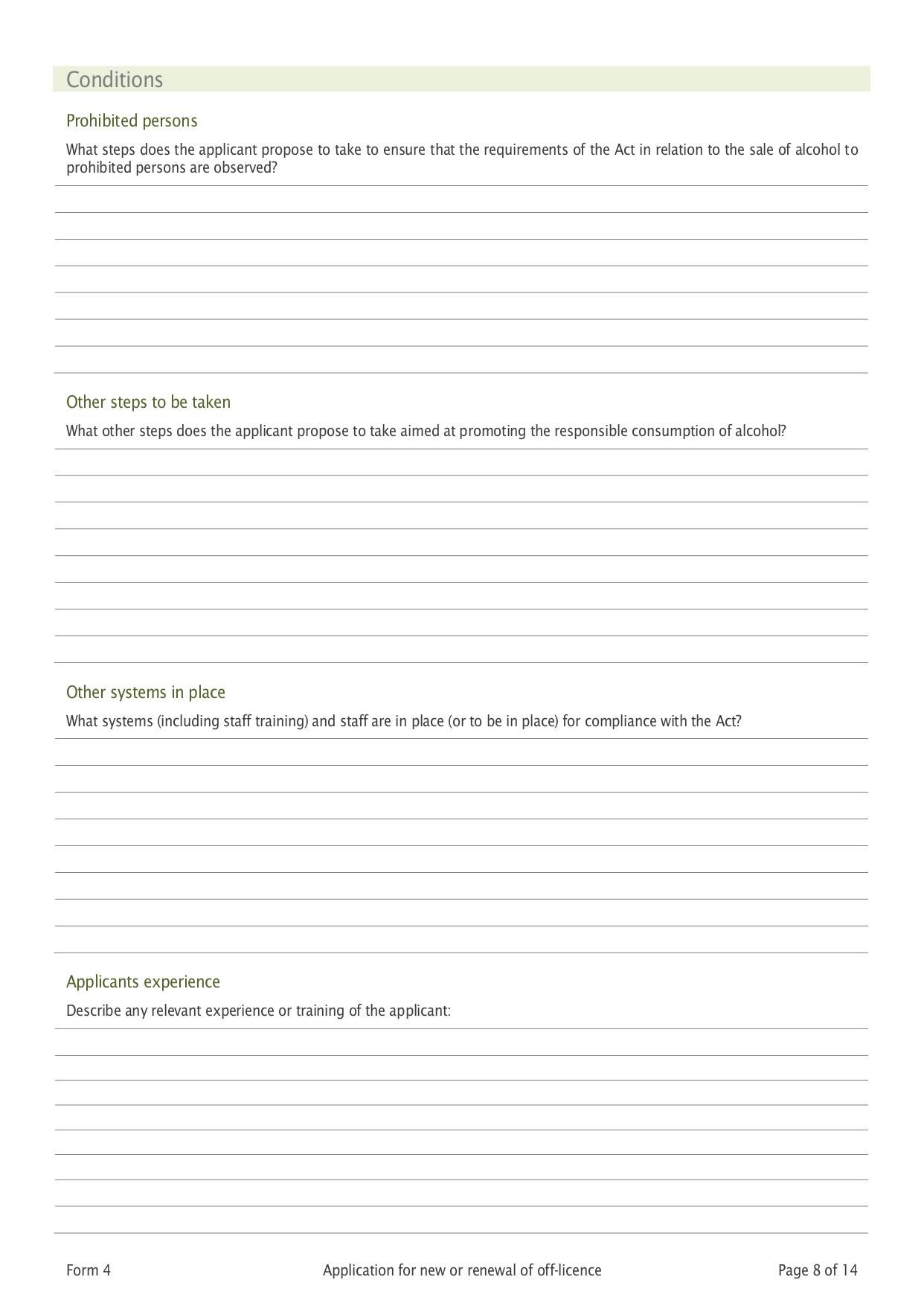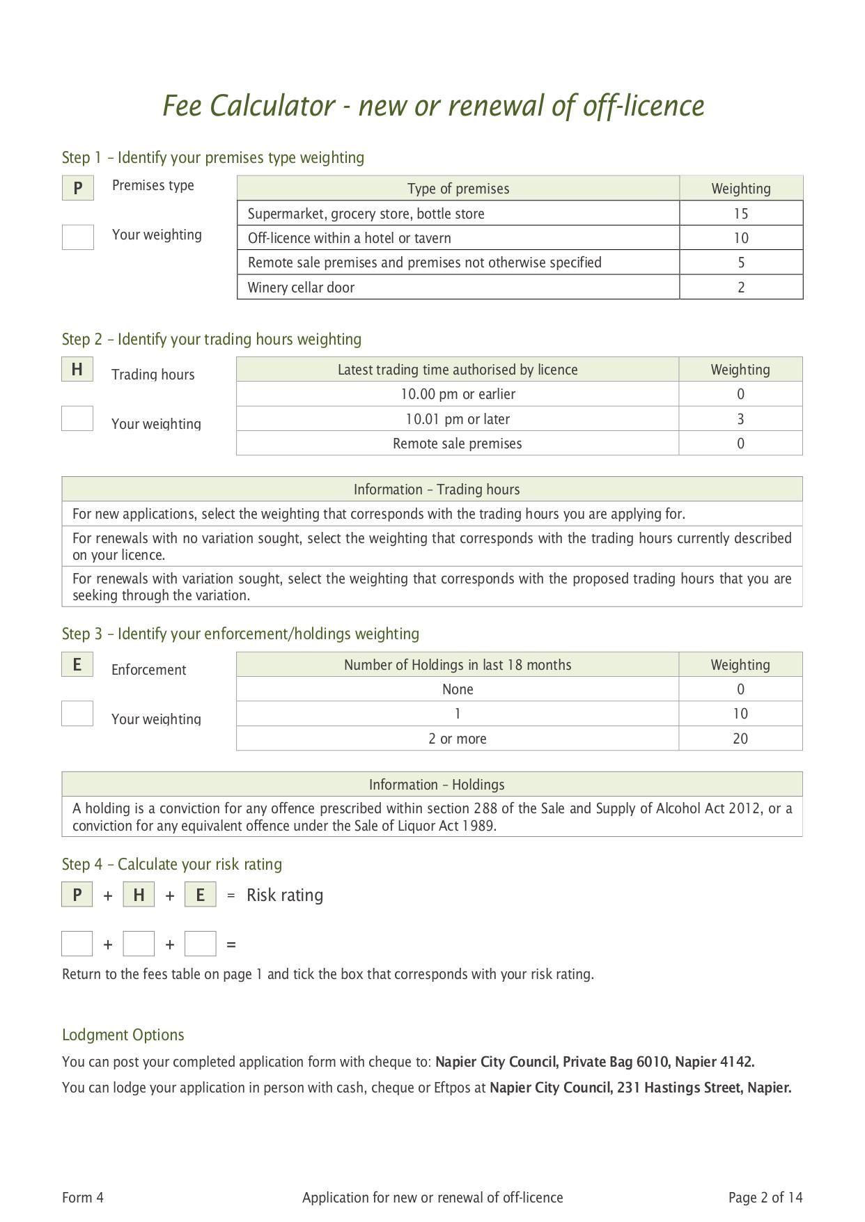 Form 4 Application for new or renewal of off-licence is a form for businesses in the Napier City Council area that want to obtain an off-licence for selling liquor.
