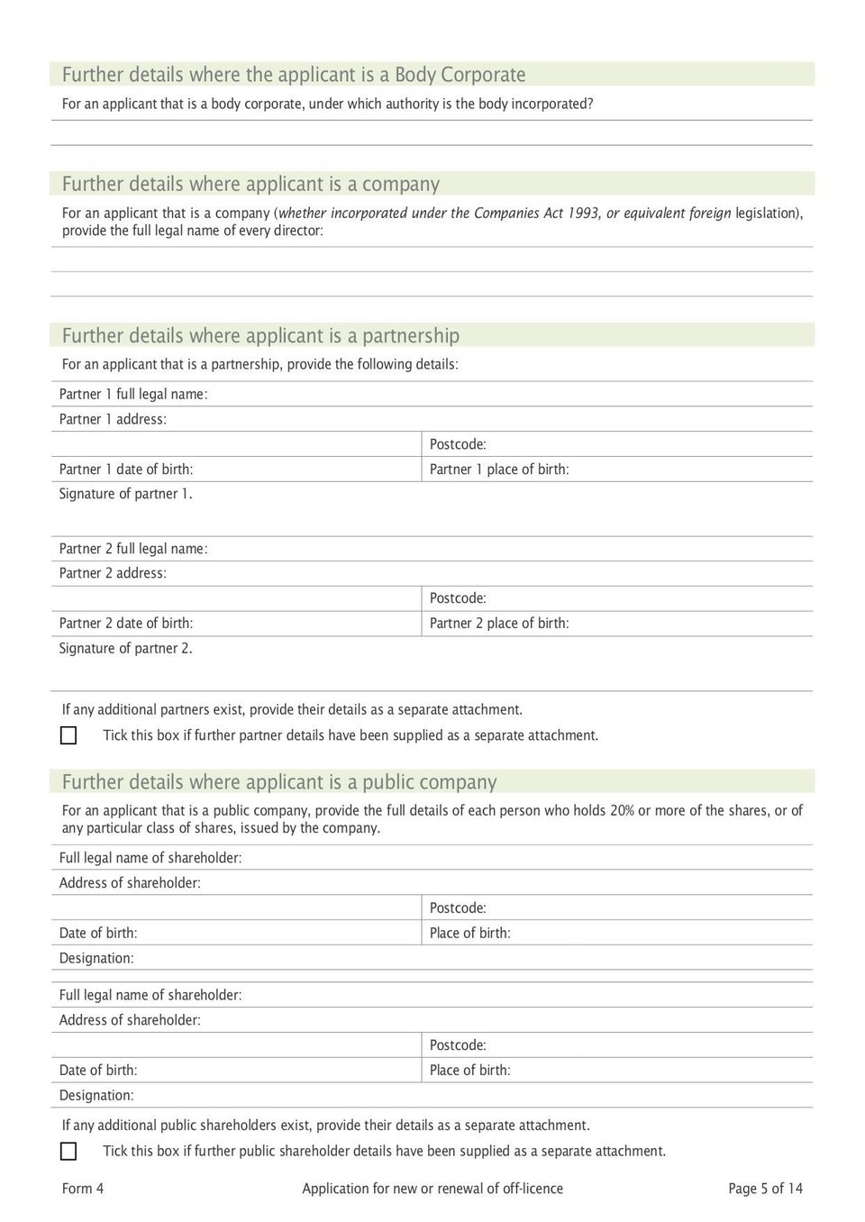 Form 4 Application for New or Renewal of Off-Licence - Oct 2015