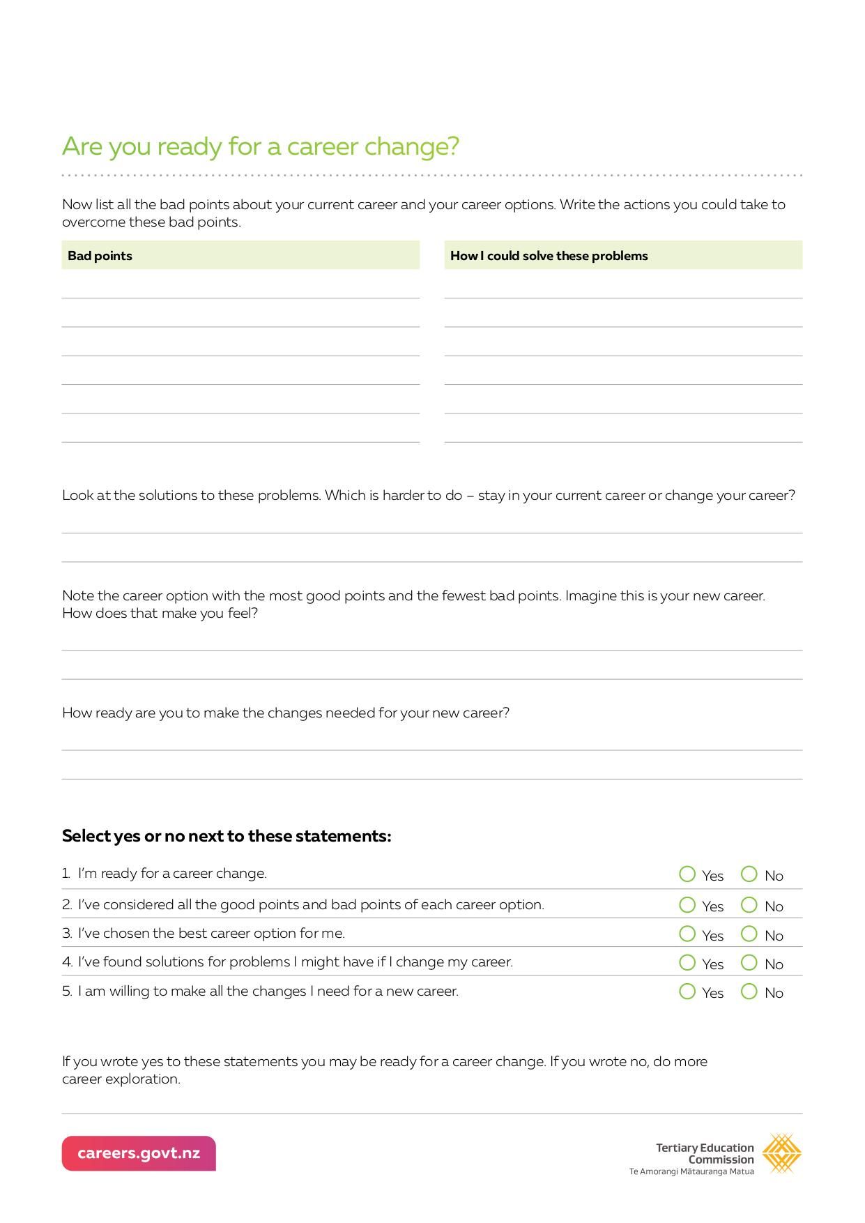 The Are You Ready for a Career Change Worksheet is a helpful tool for individuals who are contemplating a career change. This worksheet allows you to assess your readiness for a career change by evaluating various factors such as your current job satisfaction, transferable skills, and financial preparedness.