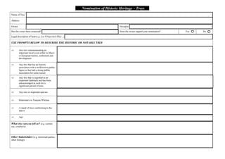 The Heritage Nomination Form is used by individuals, organizations, or communities to nominate heritage trees.