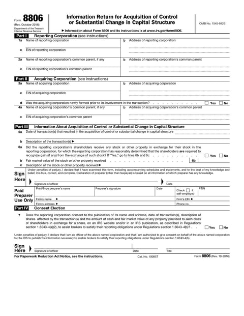 Form 8806 Accessible is used by taxpayers who have acquired control or experienced substantial change in capital structure.